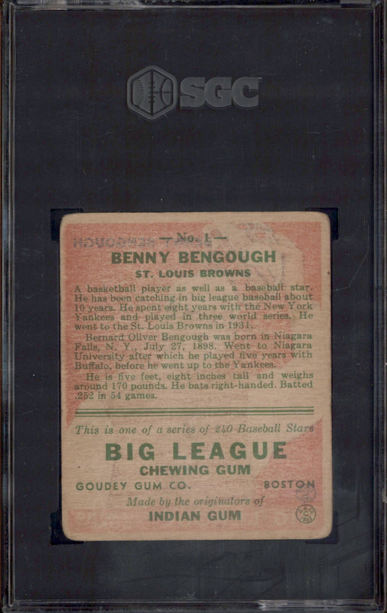 1933 Goudey #1 Benny Bengough RC SGC 1.5