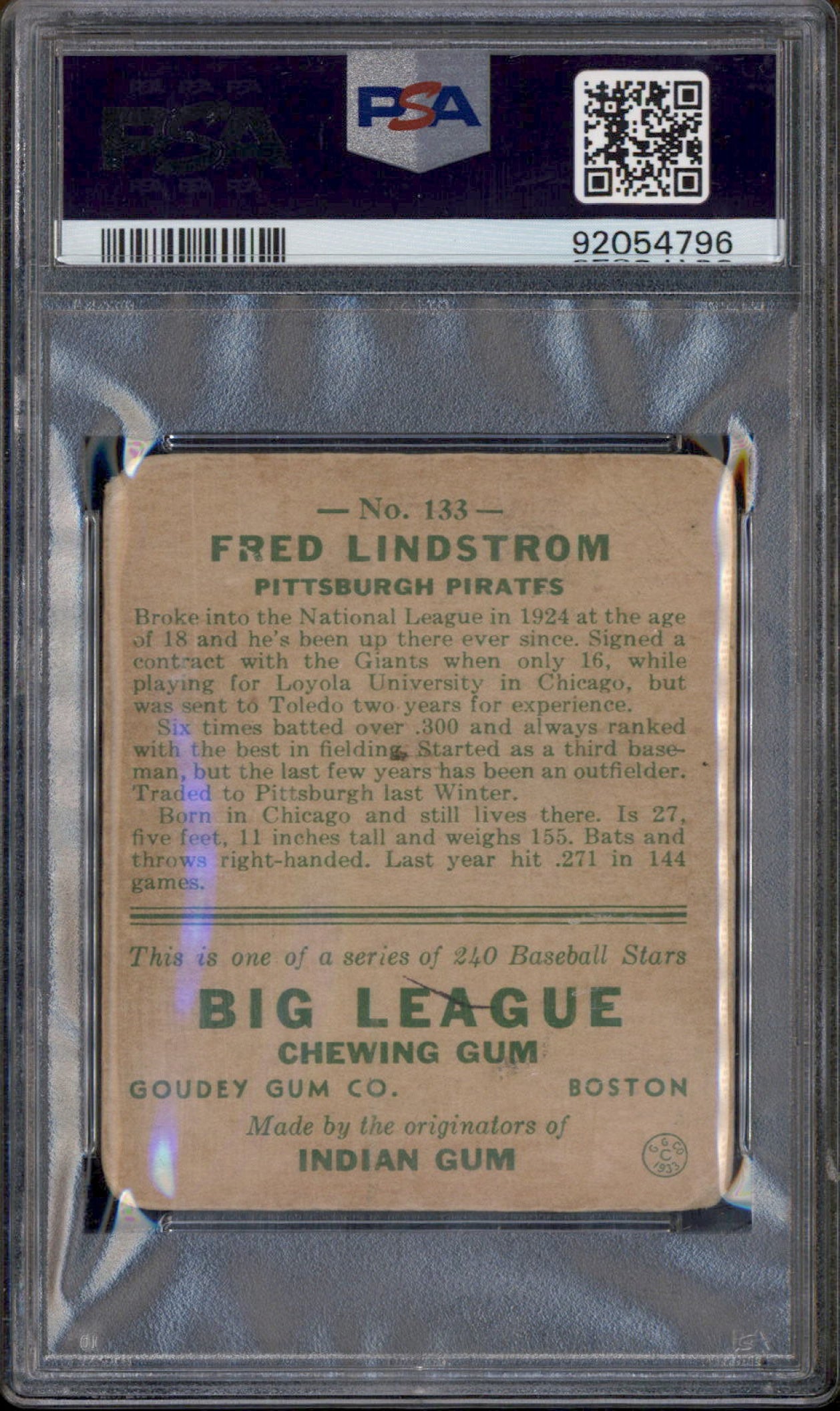 1933 Goudey #133 Fred Lindstrom RC PSA 1.5