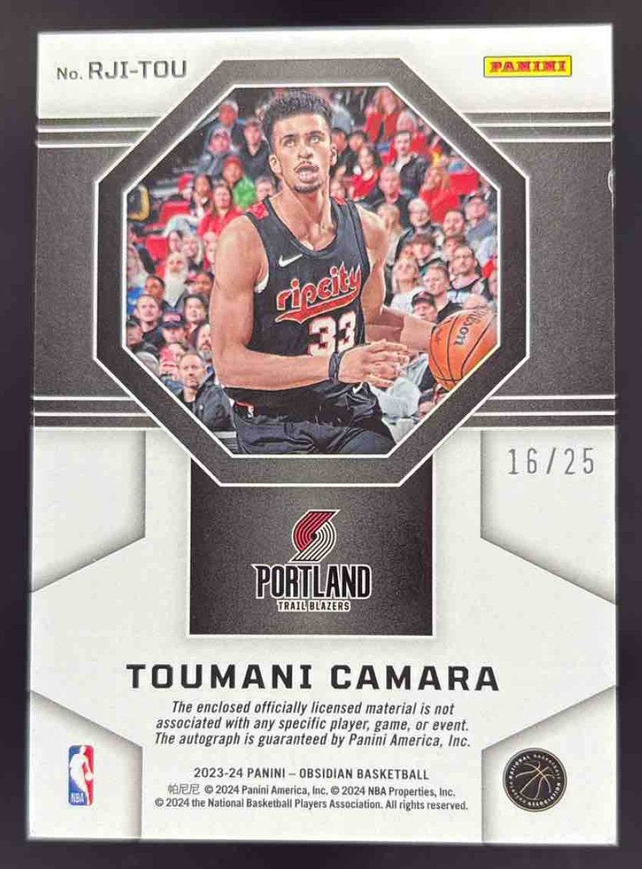 2023 Obsidian Rookie Jersey Ink Electric Etch Green Toumani Camara RC Auto /25