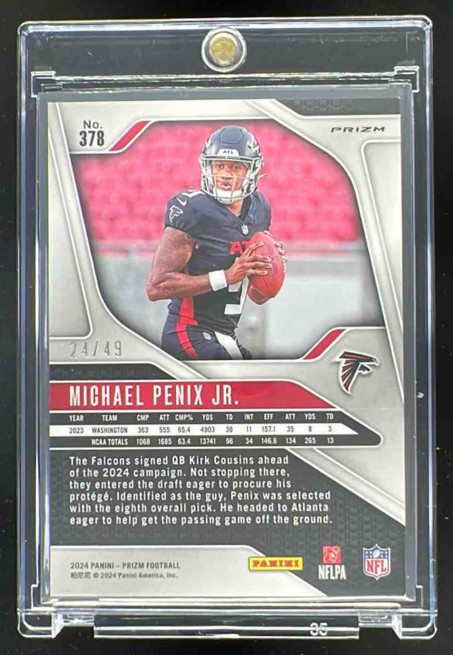 2024 Panini Prizm Purple Power Prizm #378 Michael Penix Jr. RC /49
