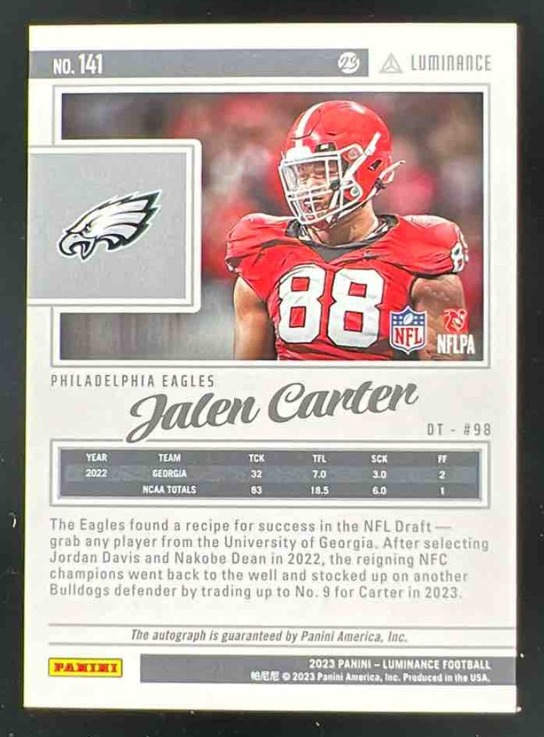 2023 Panini Luminance Autographs #141 Jalen Carter Autograph RC Auto /350