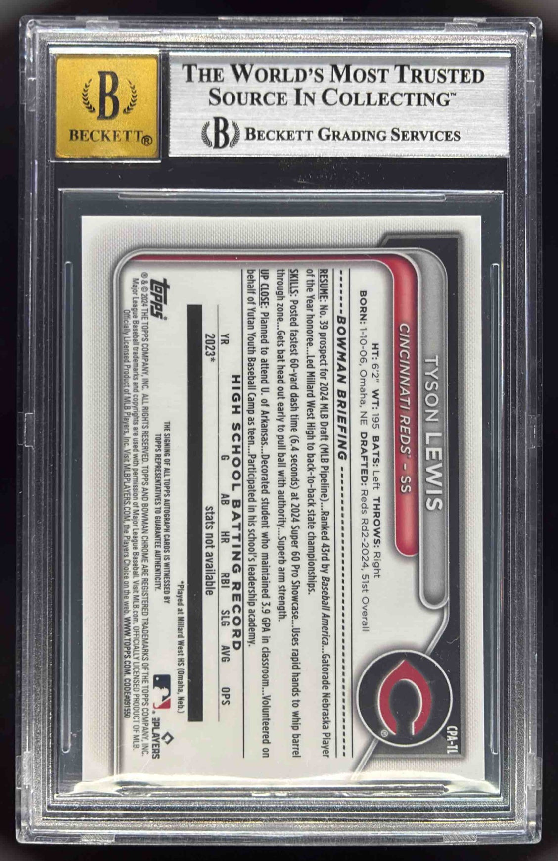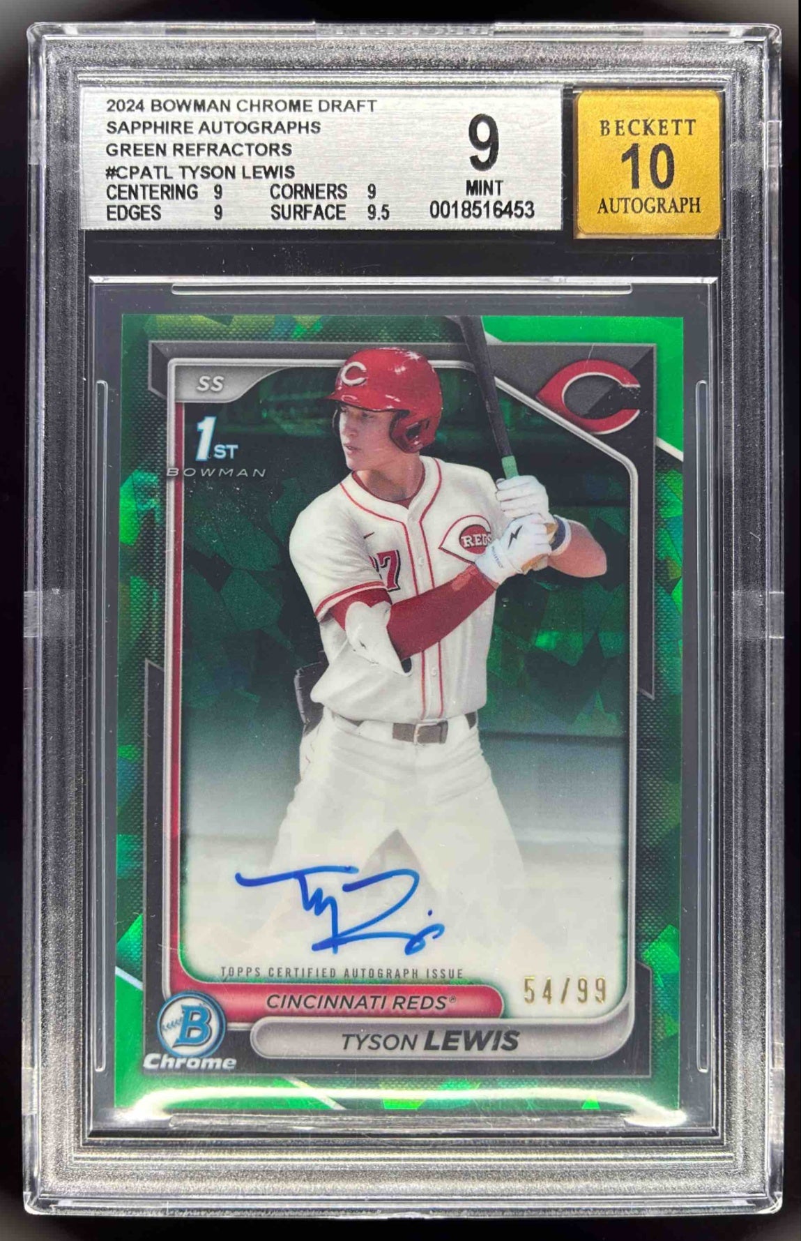 2024 Bowman Draft Sapphire Chrome Green Sapphire Tyson Lewis RC Auto /99 BGS 9