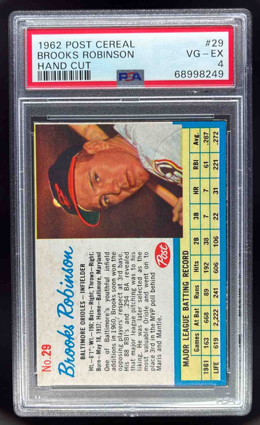 1962 Post Hand Cut #29 Brooks Robinson PSA 4
