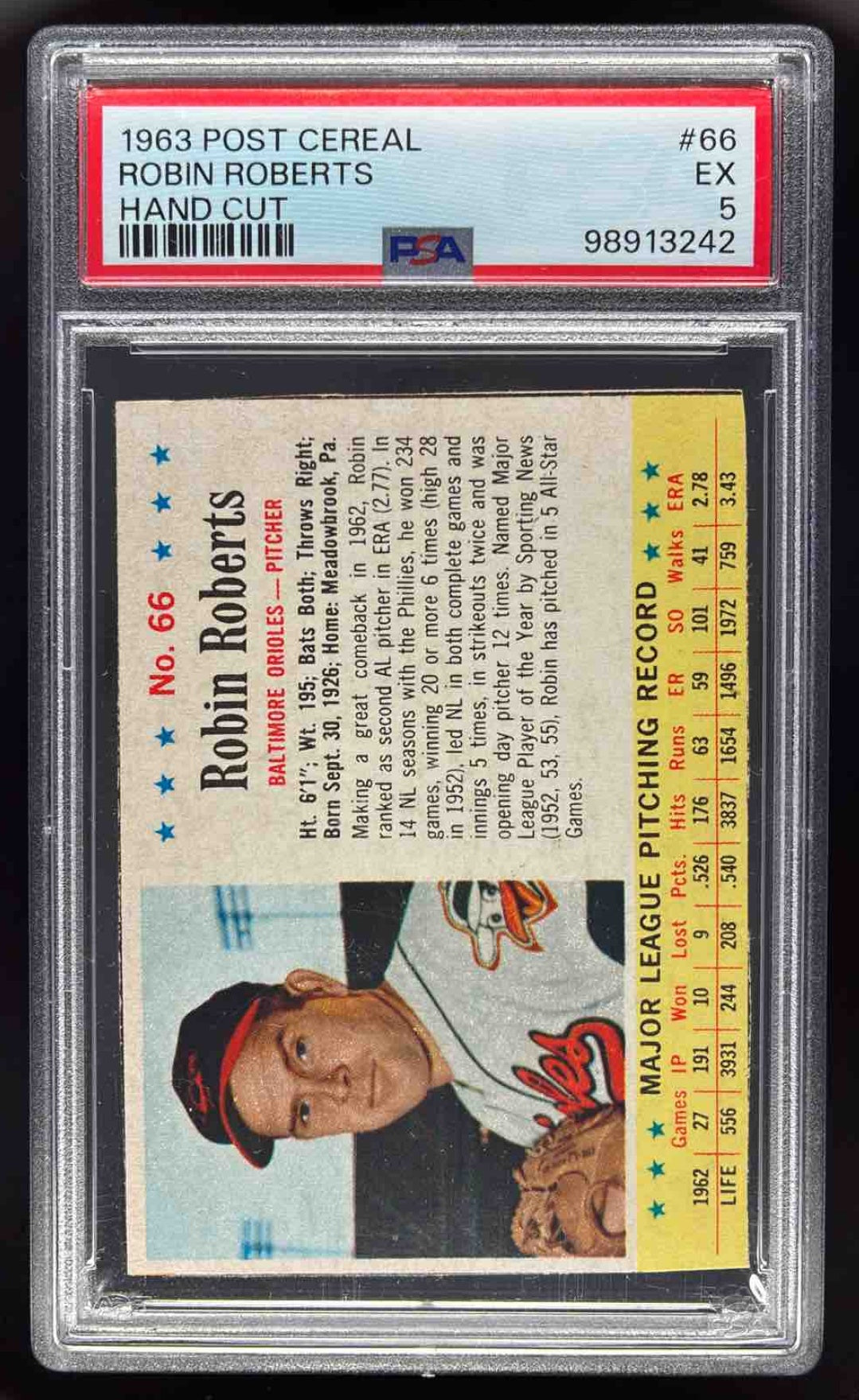 1963 Post Cereal Hand Cut #66 Robin Roberts PSA 5