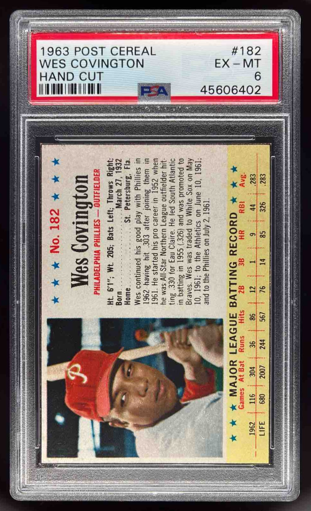 1963 Post Cereal Hand Cut #182 Wes Covington PSA 6