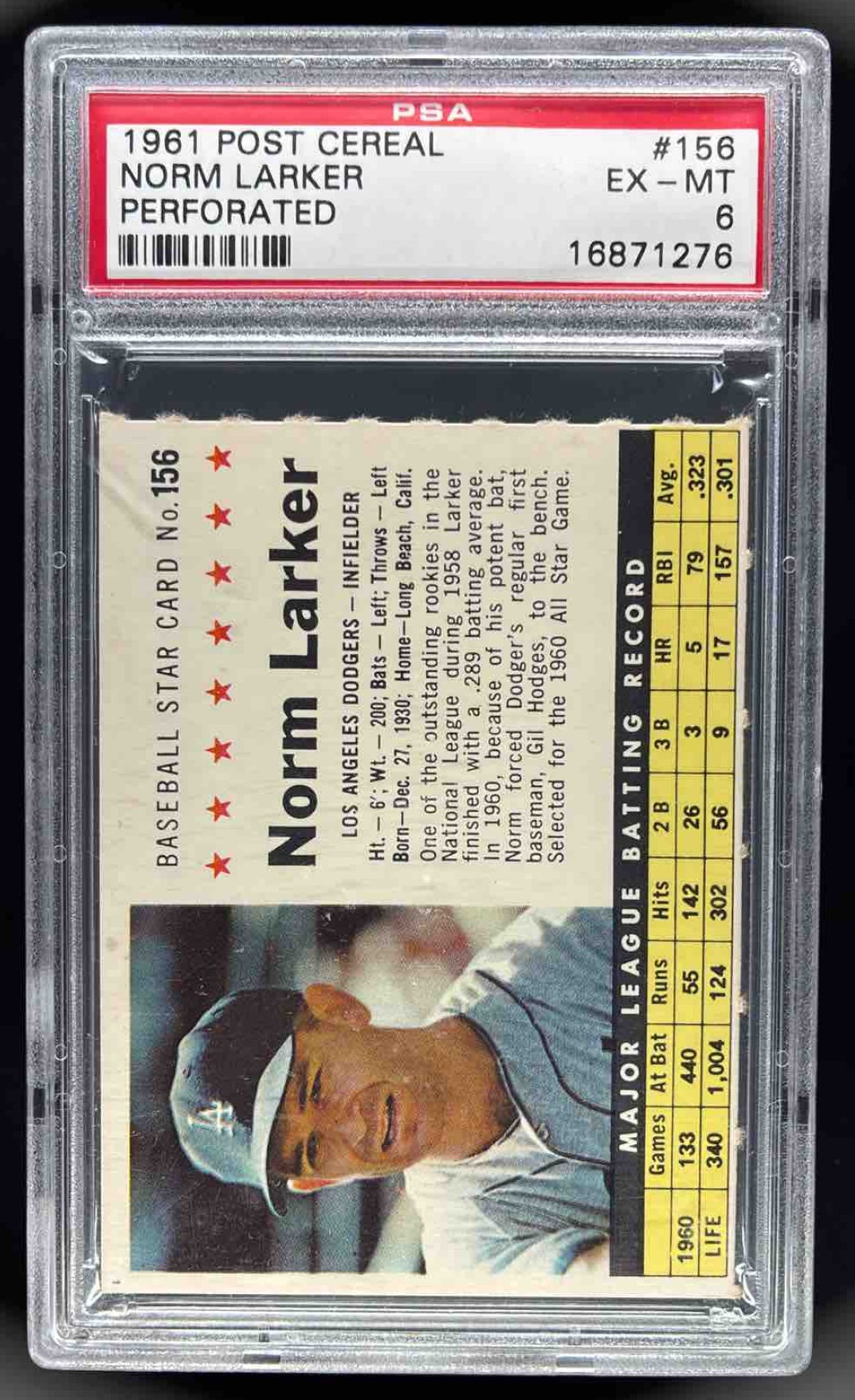 1961 Post Cereal Perforated #156 Norm Larker PSA 6