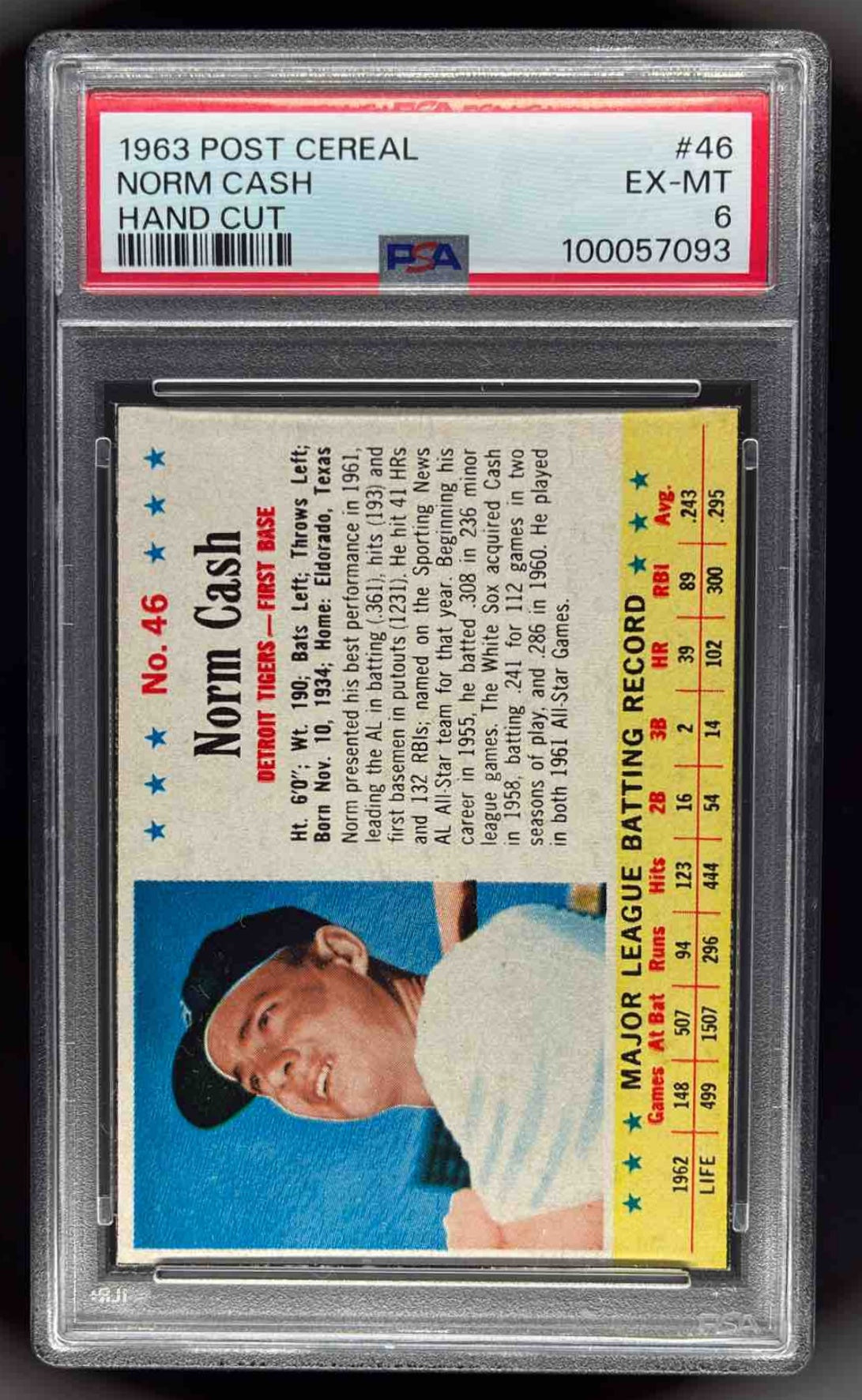 1963 Post Cereal Hand Cut #46 Norm Cash PSA 6