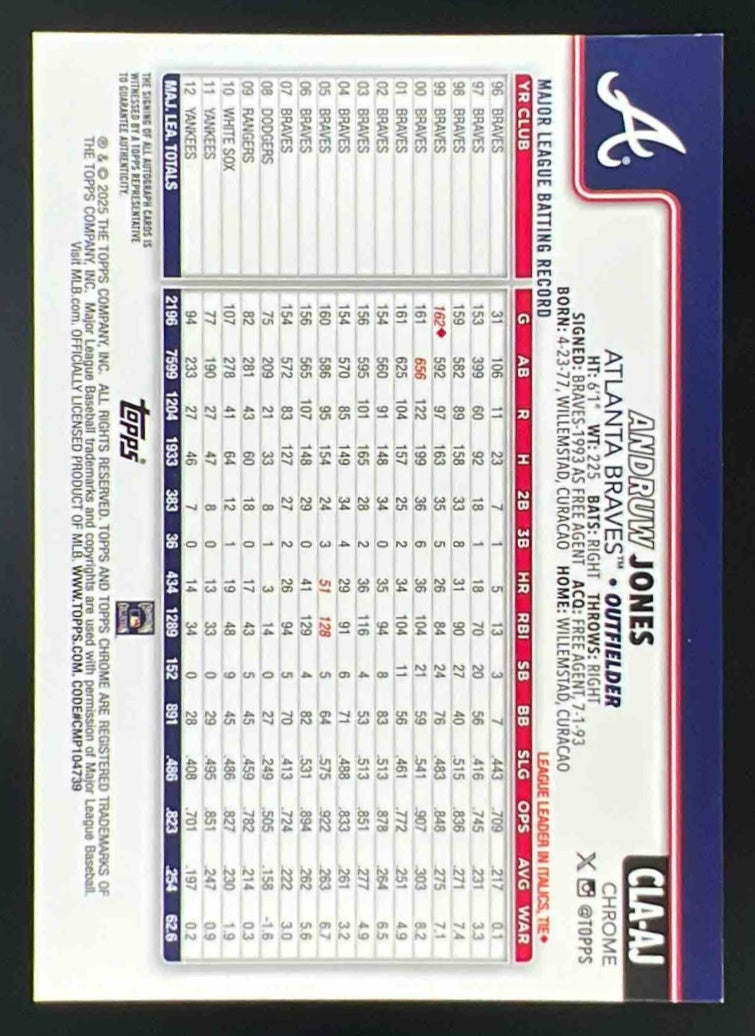 2025 Topps Chrome Legends Autographs Red Refractor #CLA-AJ Andruw Jones Auto /5