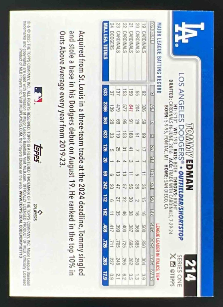 2025 Topps Dancing Dodger Variation #214 Tommy Edman