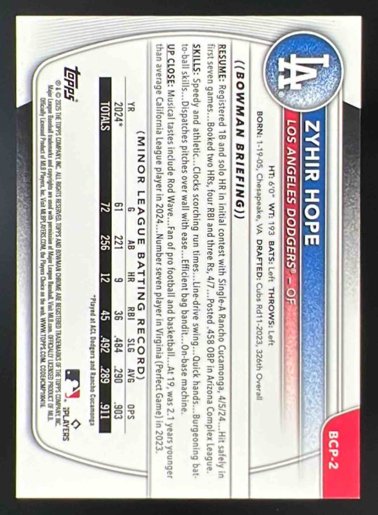 2025 Bowman Sapphire Chrome Prospects Red Refractors #BCP-2 Zyhir Hope /5