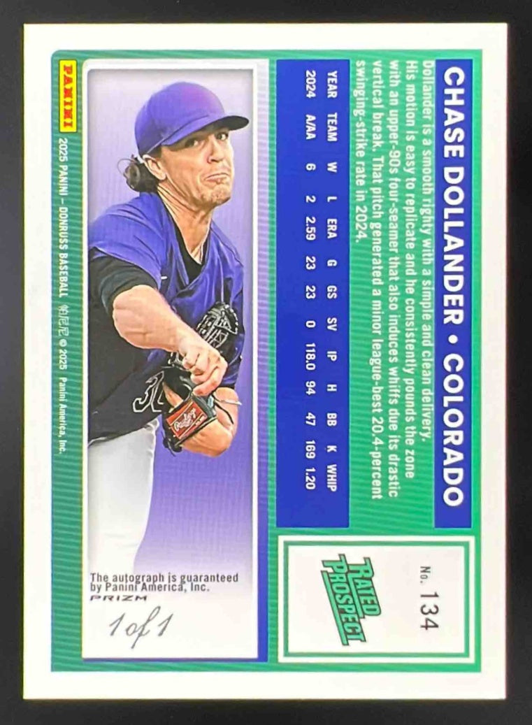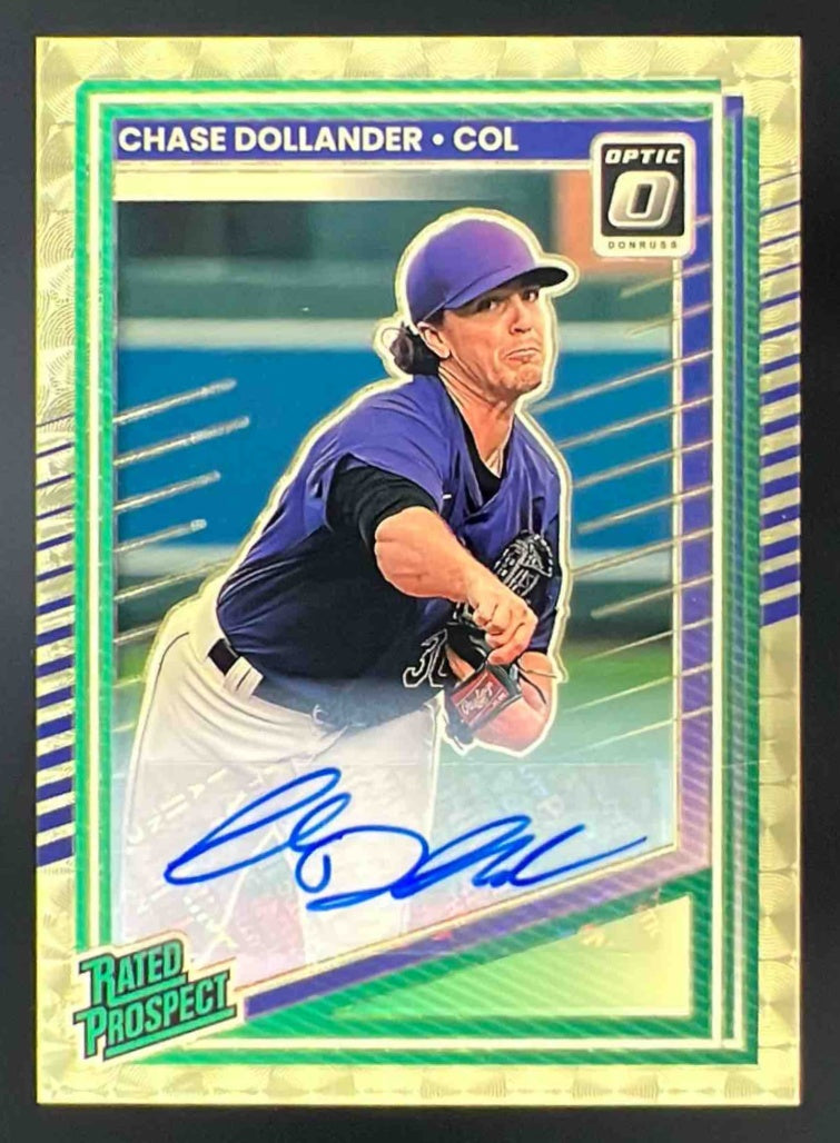 2025 Donruss Prospects Optic Signatures Gold Vinyl #134 Chase Dollander Auto 1/1
