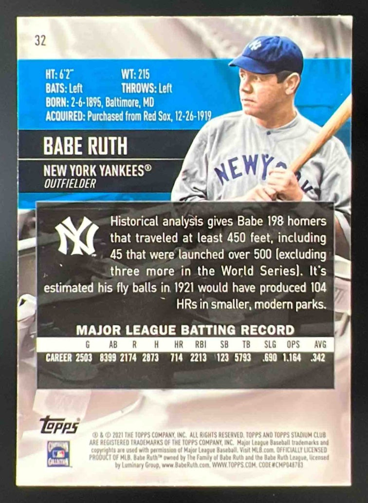 2021 Topps Stadium Club Chrome Wave Refractor #32 Babe Ruth