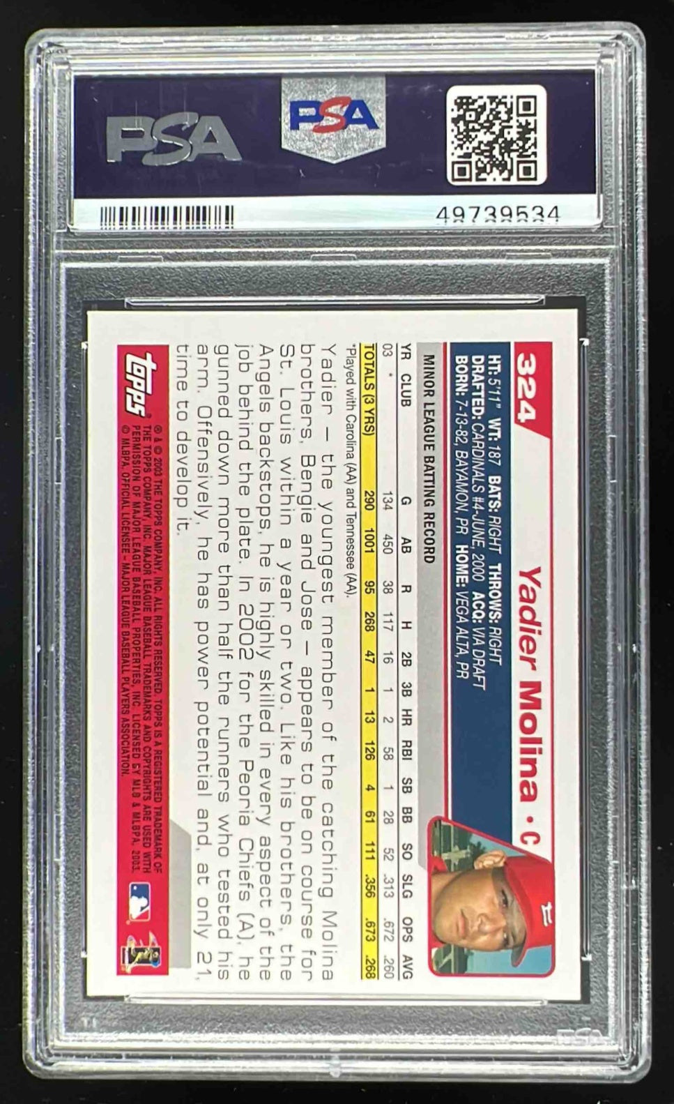 2004 Topps #324 Yadier Molina RC PSA 10