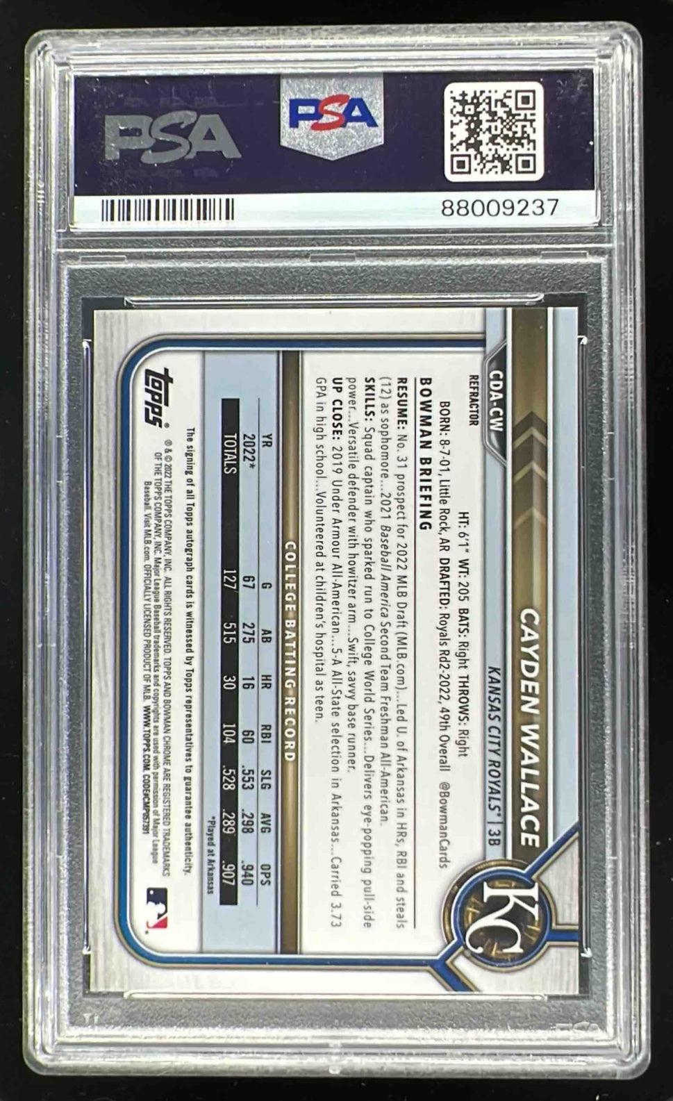 2022 Bowman Draft Chrome Pick Refractor Cayden Wallace RC Auto /499 PSA 10