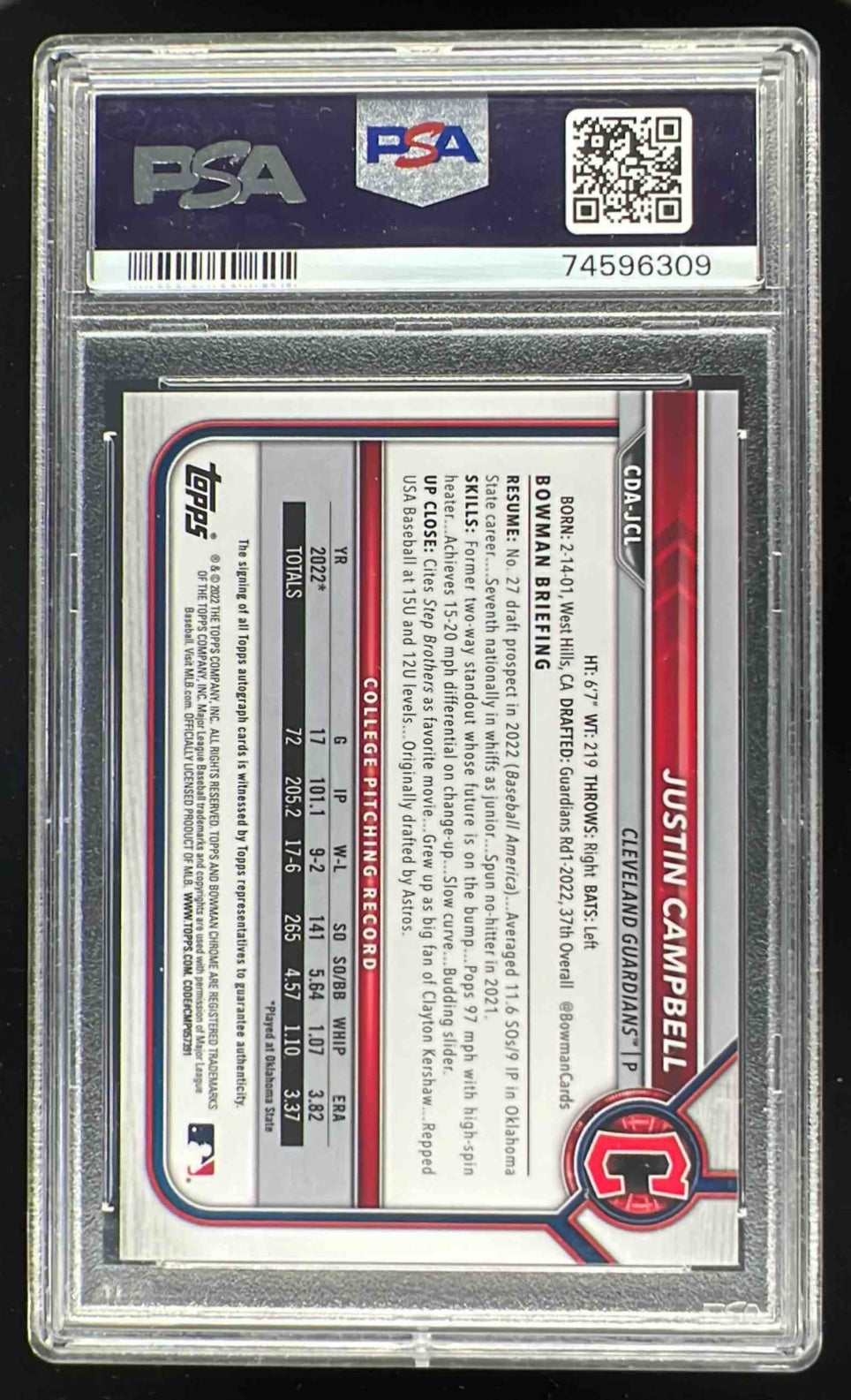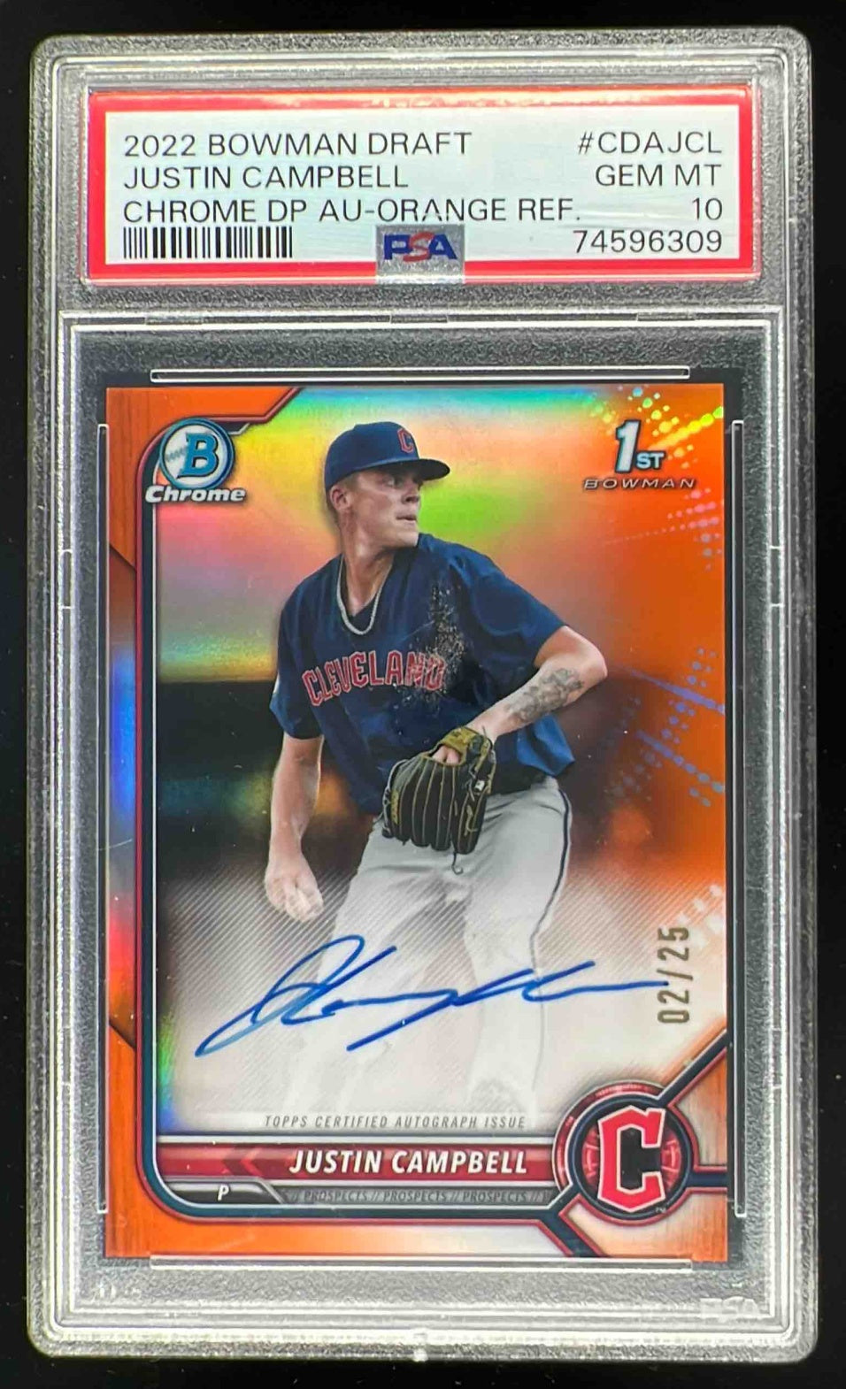 2022 Bowman Draft Chrome Pick Orange #CDA-JCL Justin Campbell RC Auto /25 PSA 10