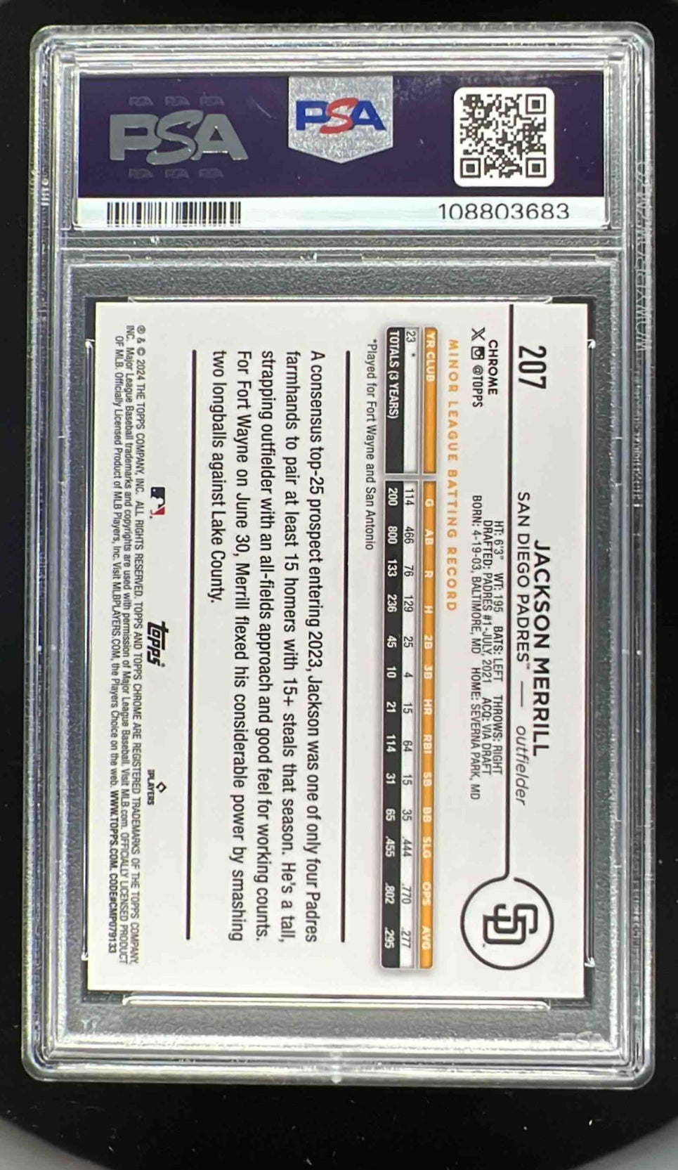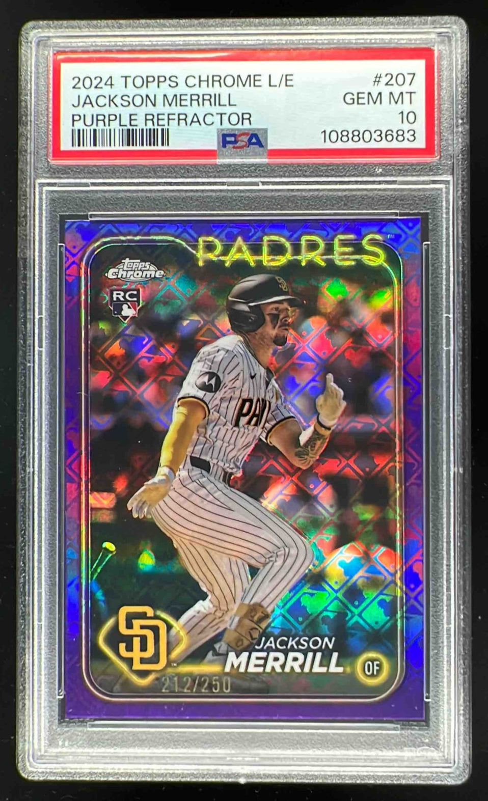 2024 Topps Chrome Logofractor Purple MLB #207 Jackson Merrill RC /250 PSA 10