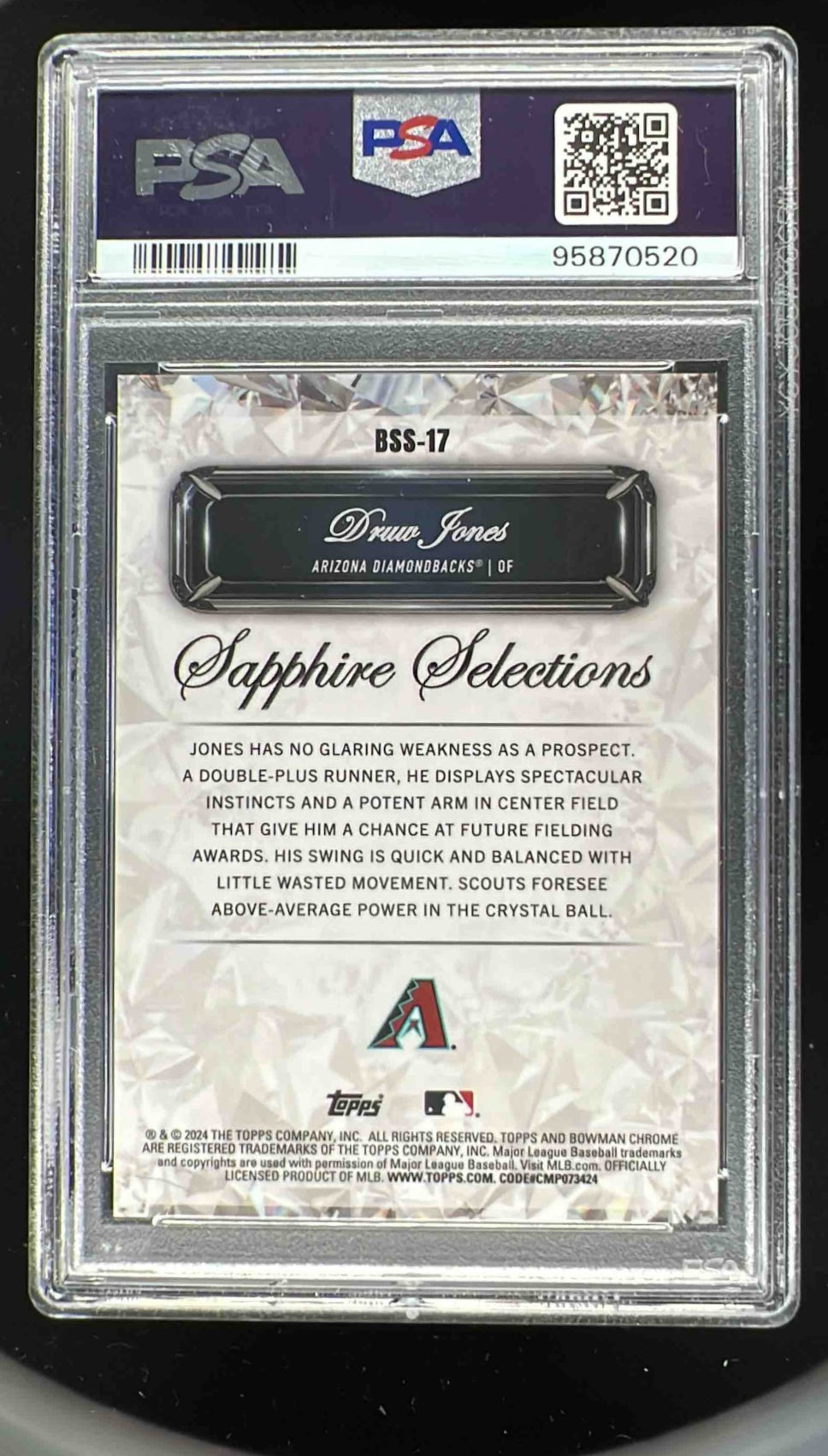 2024 Bowman Sapphire Selections Gold Refractors #BSS-17 Druw Jones /50 PSA 10