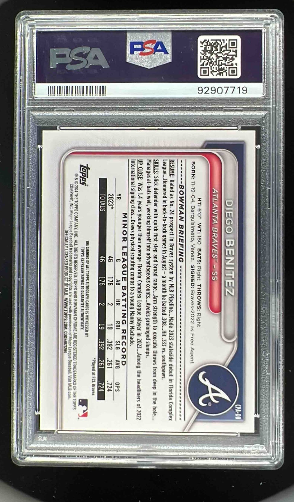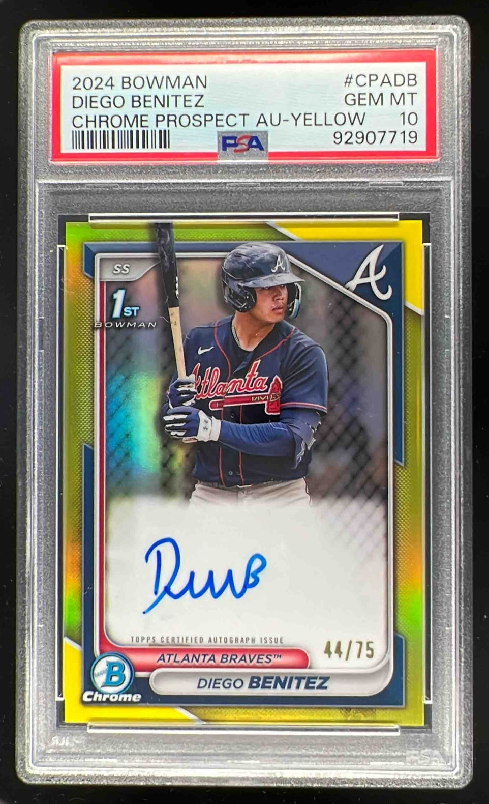 2024 Bowman Chrome Yellow Refractor #CPA-DB Diego Benitez RC Auto /75 PSA 10