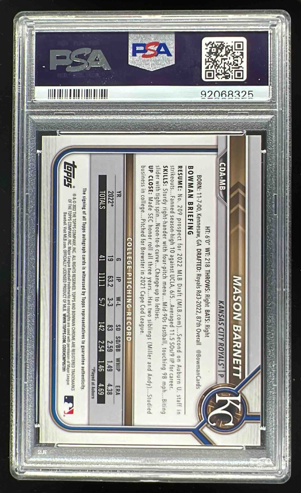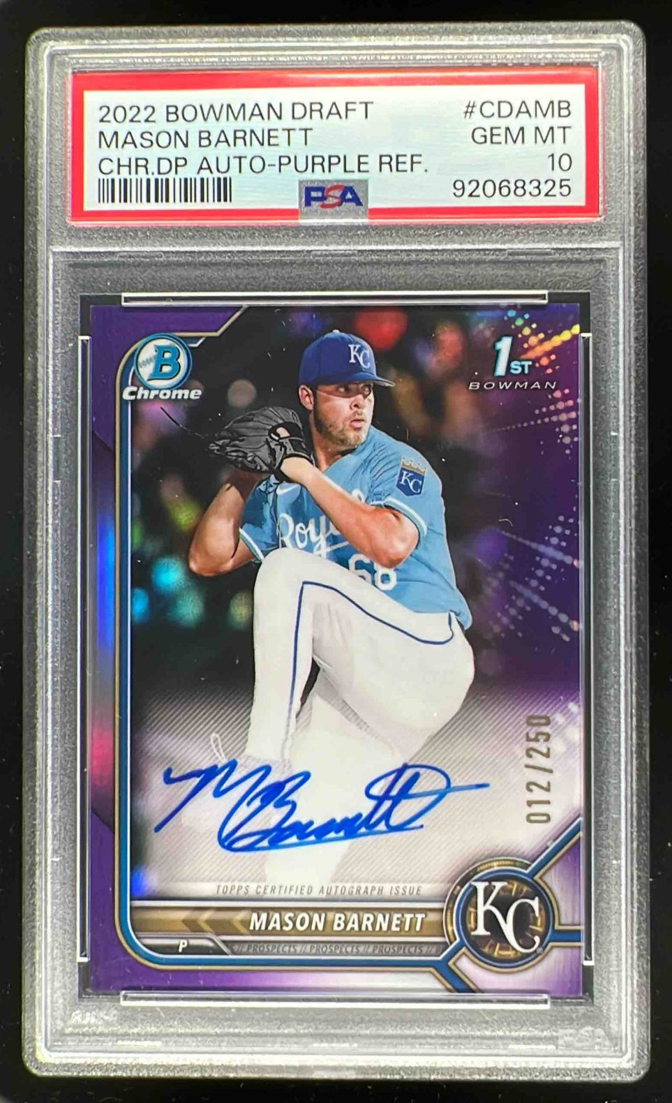 2022 Bowman Draft Chrome Purple Refractor Mason Barnett RC Auto /250 PSA 10