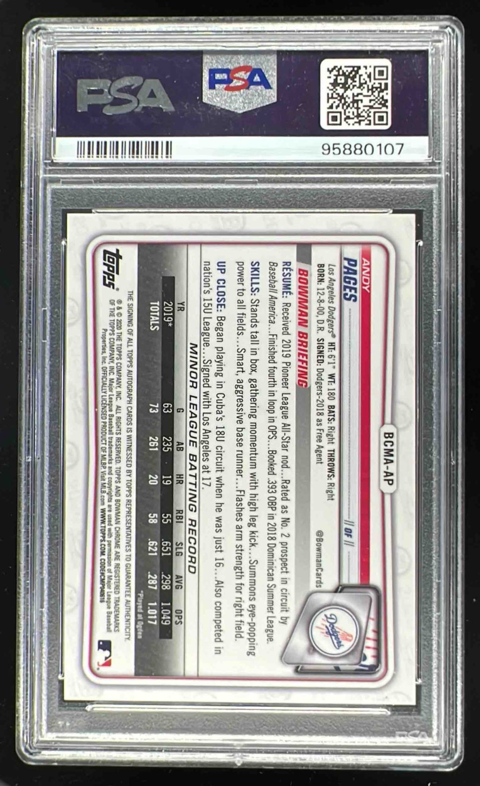 2020 Bowman Chrome Autographs Mojo Refractor #BCMA-AP Andy Pages Auto PSA 10