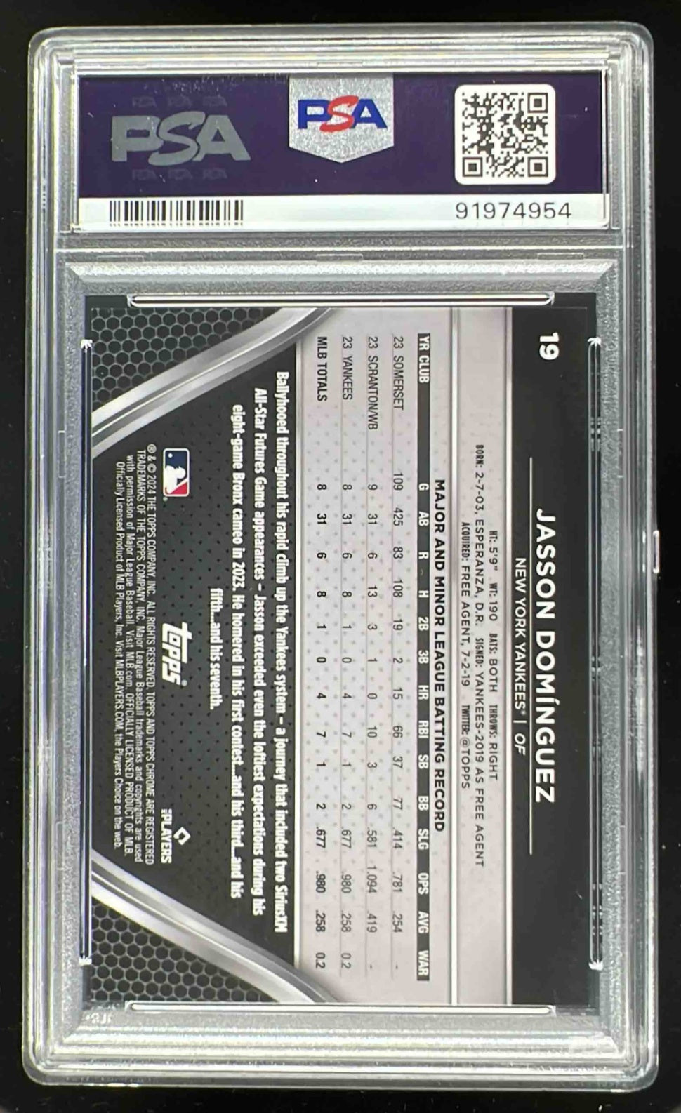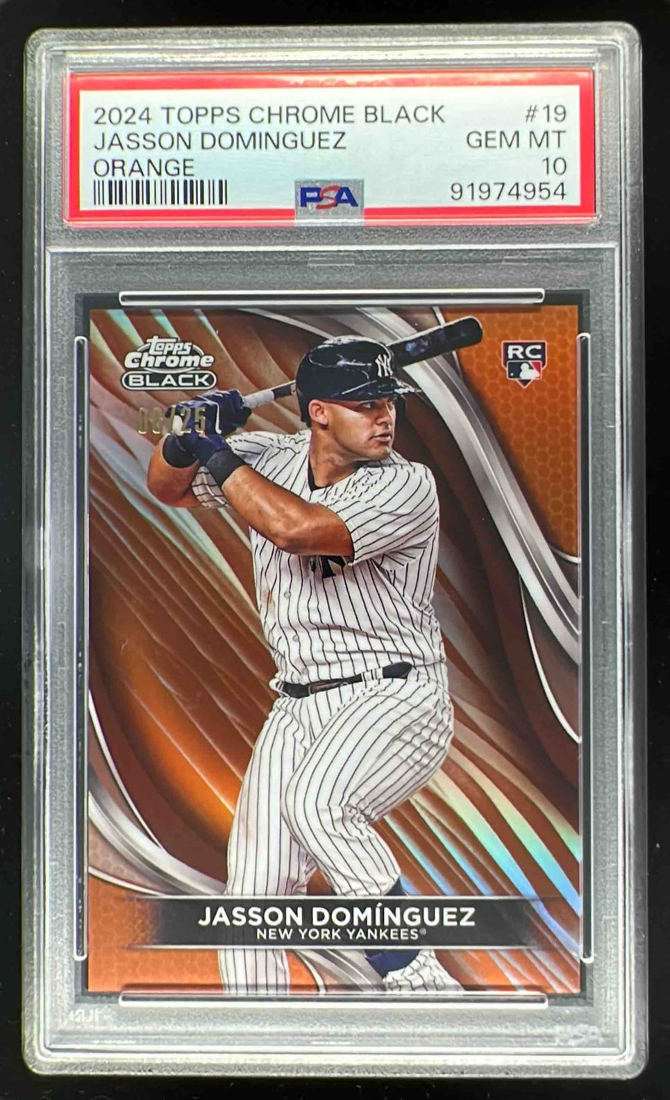 2024 Topps Chrome Black Orange Refractors #19 Jasson Dominguez RC /25 PSA 10