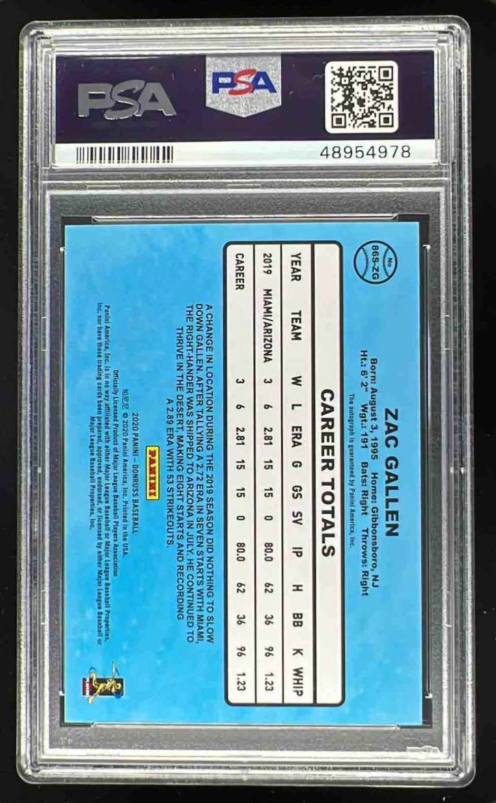 2020 Donruss Retro 1986 Signatures Red #86S-ZG Zac Gallen RC Auto /10 PSA 9