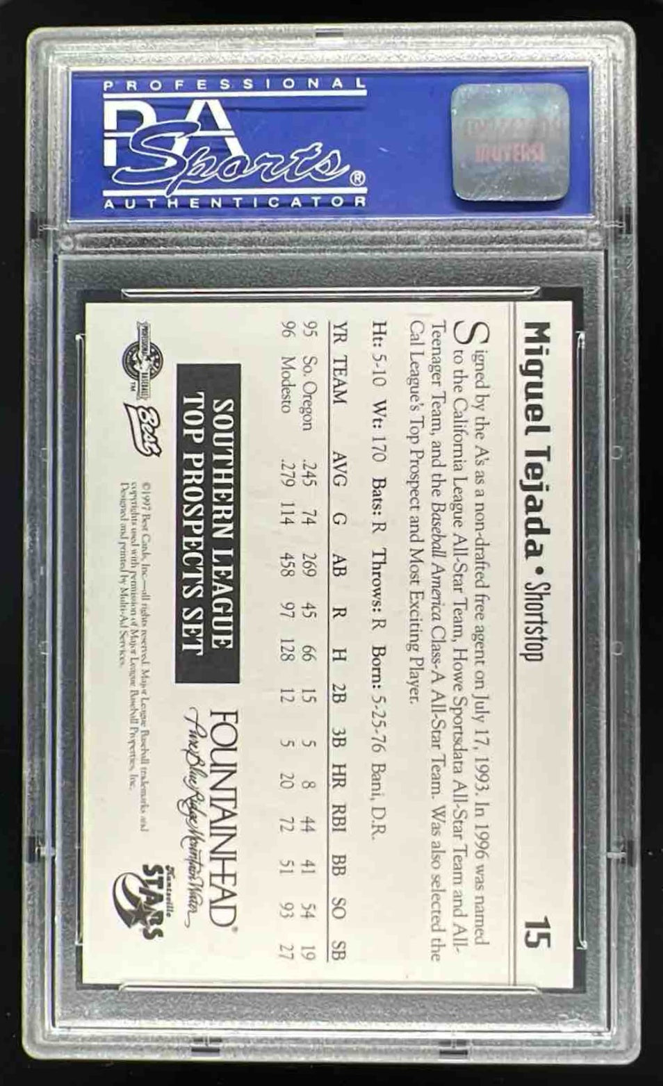 1997 Best Southern League Top Prospects #15 Miguel Tejada PSA 9