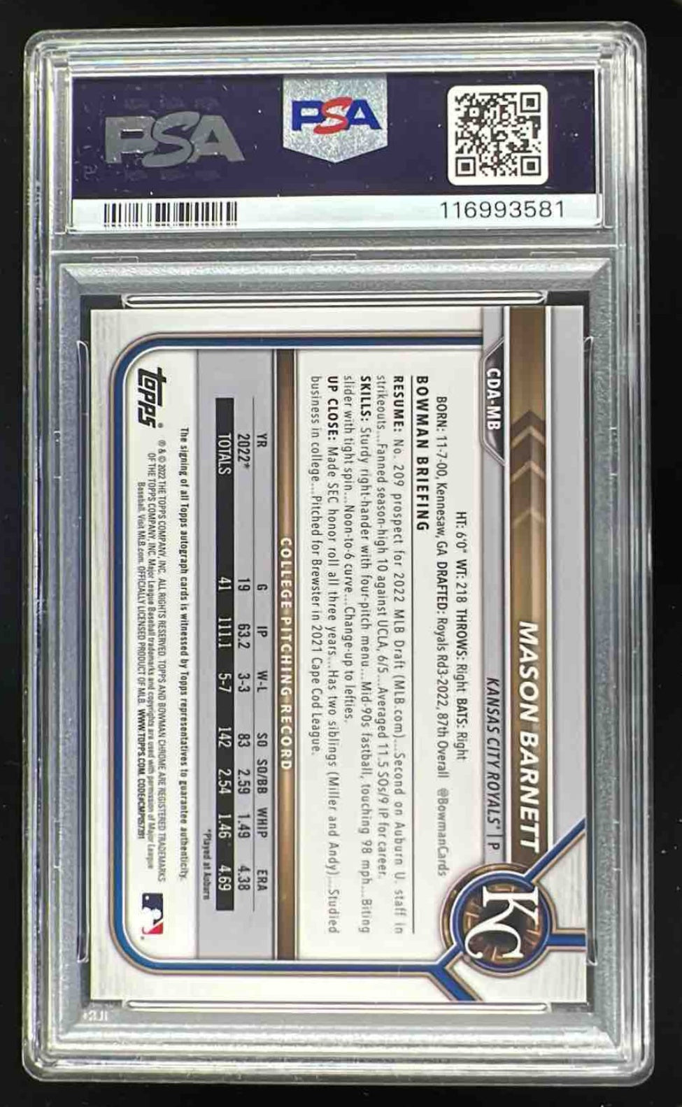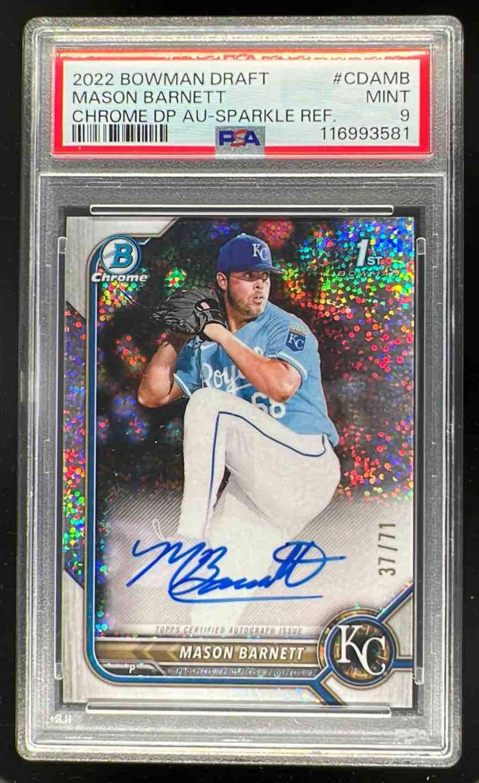 2022 Bowman Draft Chrome Pick Sparkle #CDA-MB Mason Barnett RC Auto /71 PSA 9