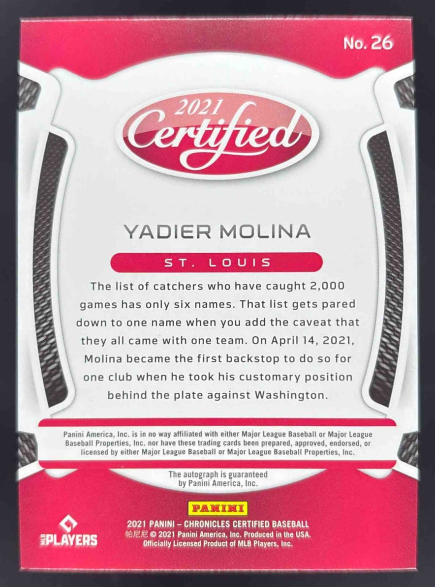 2021 Panini Chronicles Certified Autographs #26 Yadier Molina Auto