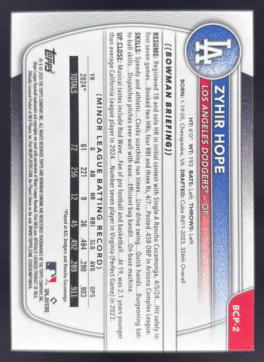 2025 Bowman Chrome Prospects Yellow X-Fractor #BCP-2 Zyhir Hope /75