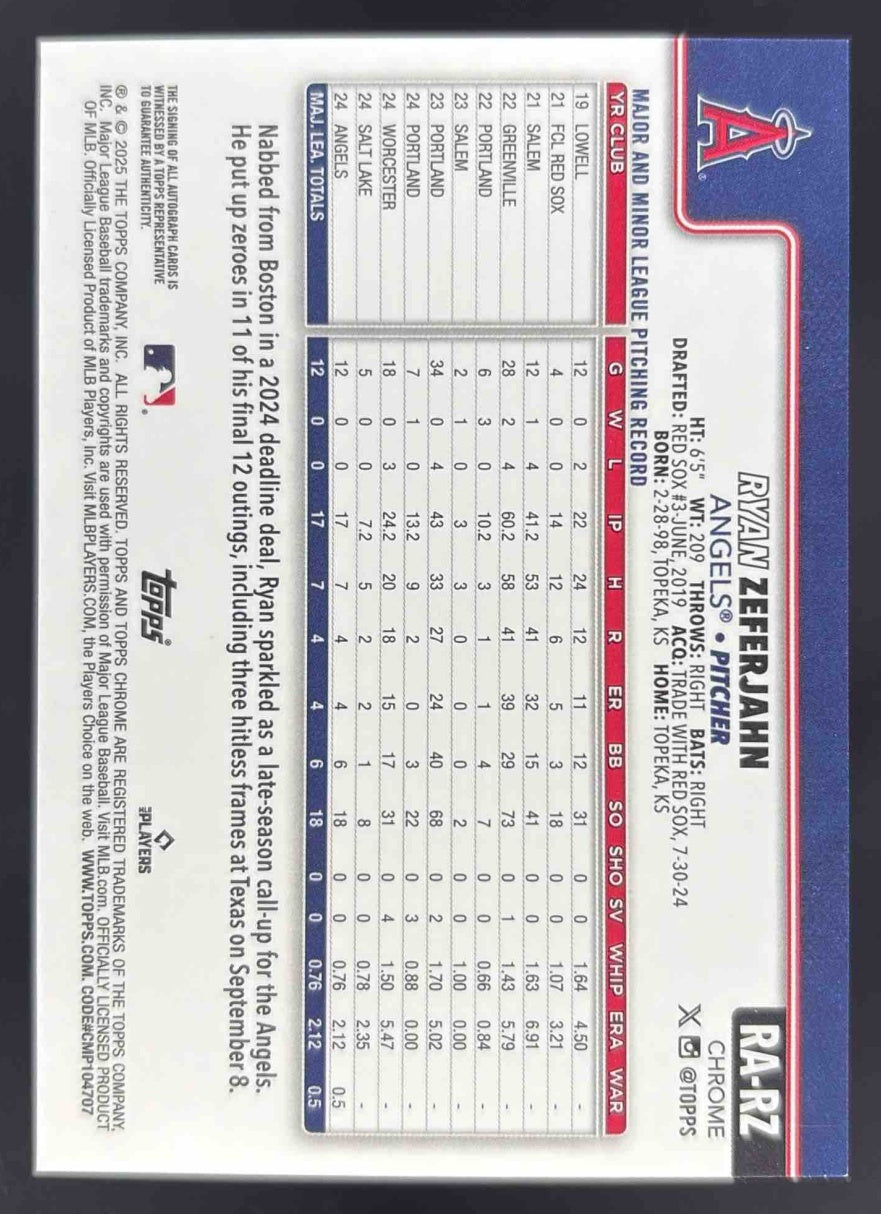 2025 Topps Chrome Rookie Autographs Green #RA-RZ Ryan Zeferjahn RC Auto /99