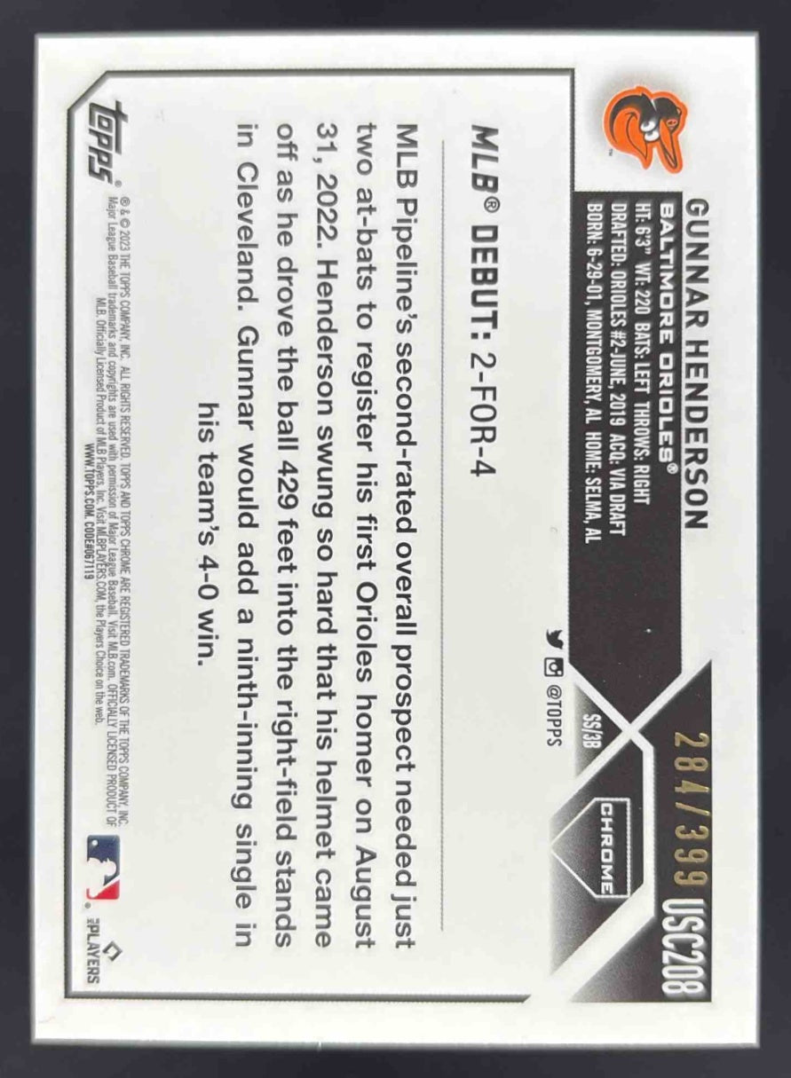 2023 Topps Chrome Update Magenta Refractor #USC208 Gunnar Henderson RC /399