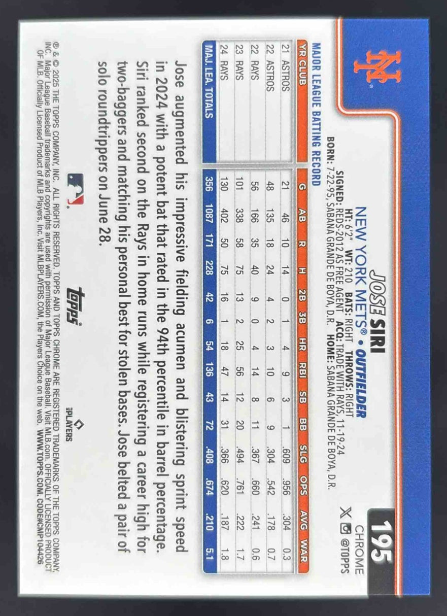 2025 Topps Chrome Sapphire Red Sapphire #195 Jose Siri /5