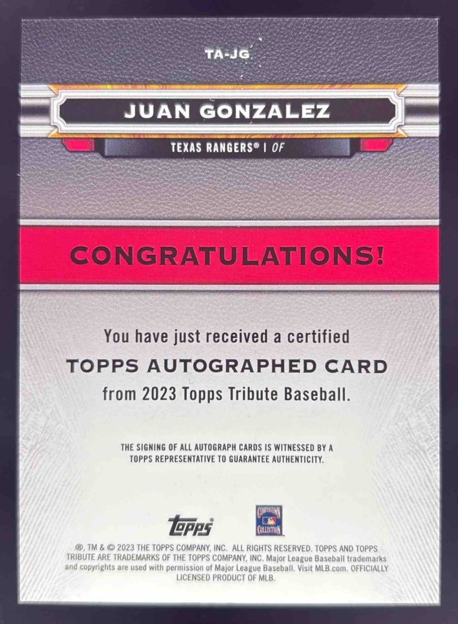 2023 Topps Tribute Autographs #TA-JG Juan Gonzalez Auto /199