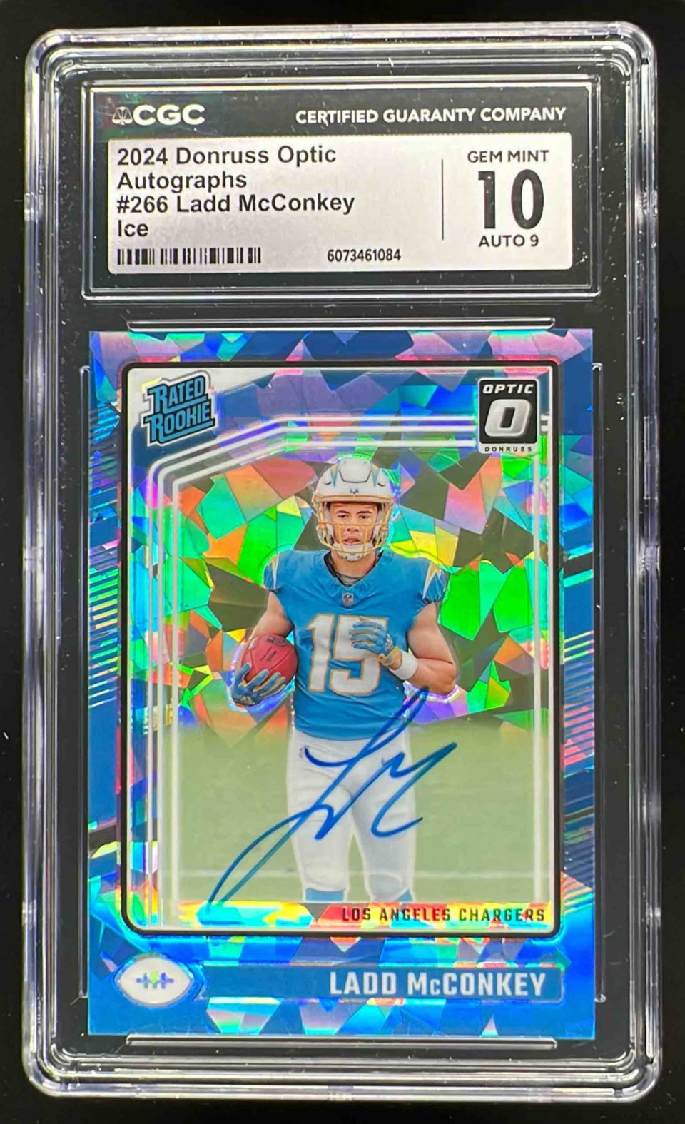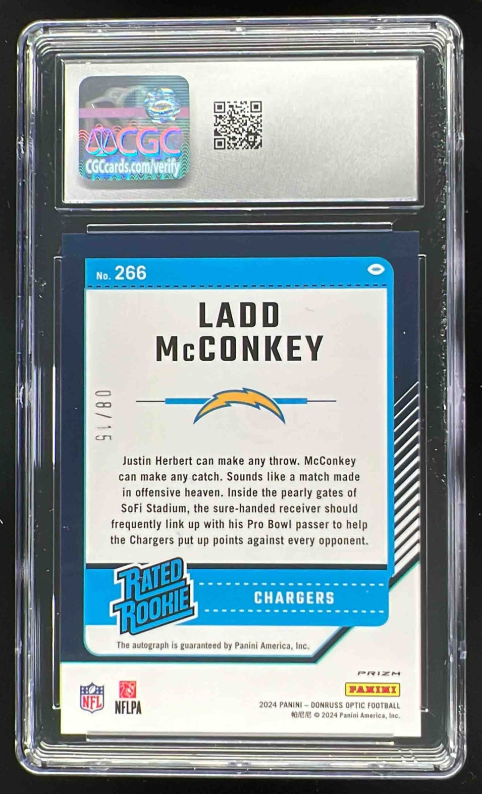 2024 Donruss Optic Rated Rookies Ice #266 Ladd McConkey RC Auto /15 CGC 10