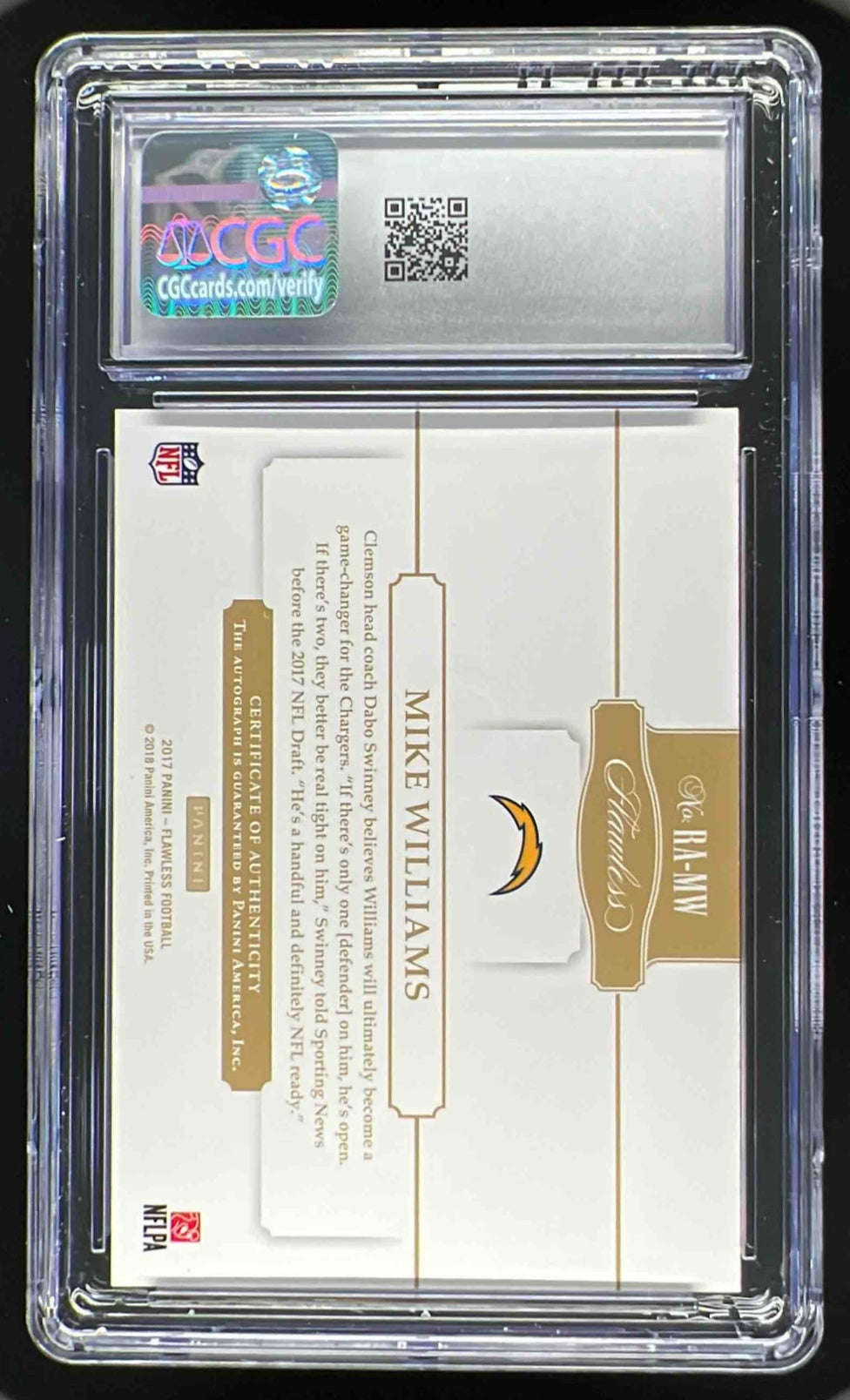 2017 Panini Flawless Rookie Autographs #RA-MW Mike Williams RC Auto /20 CGC 10