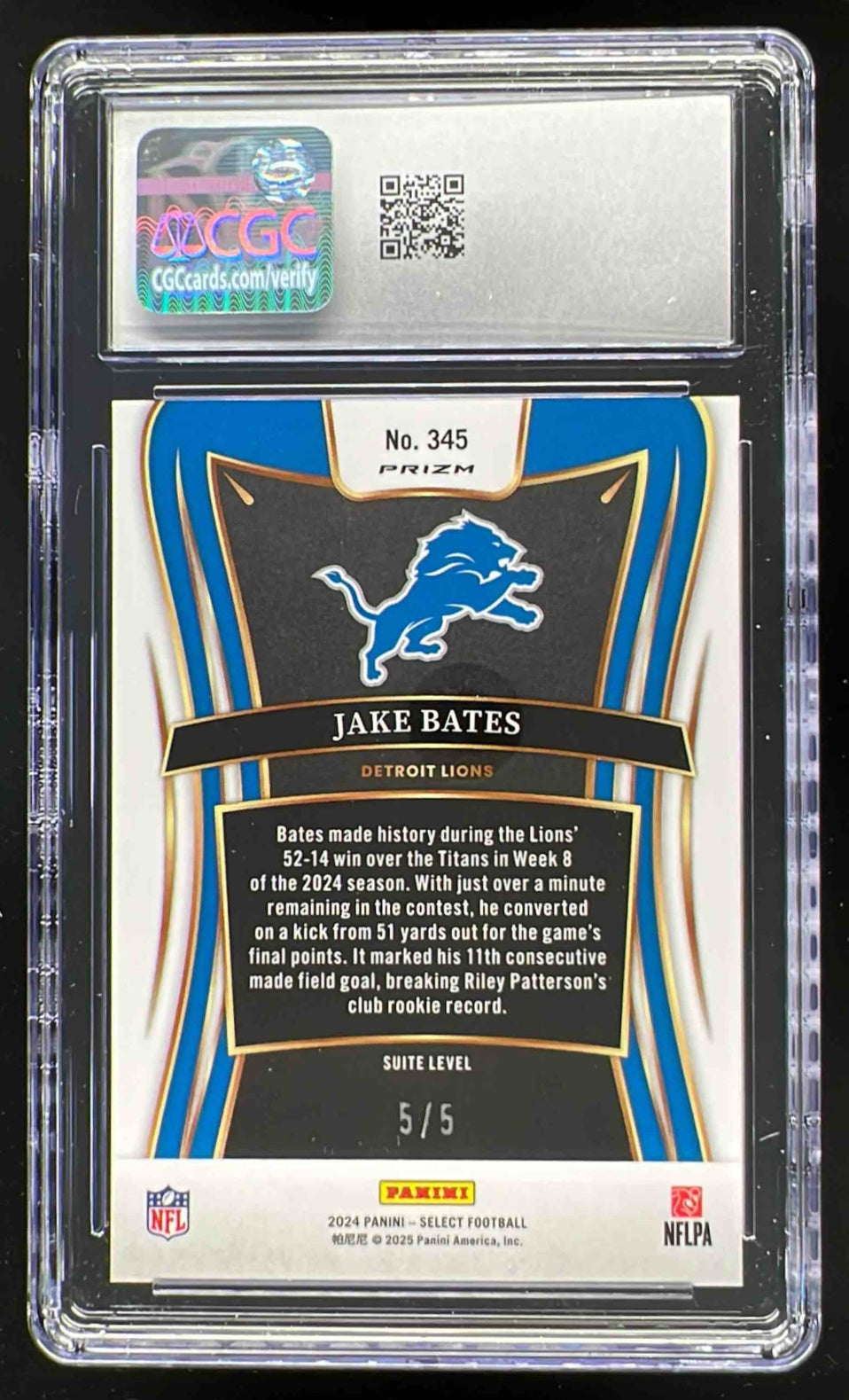 2024 Select Suite Green Prizm #345 Jake Bates RC /5 CGC 10
