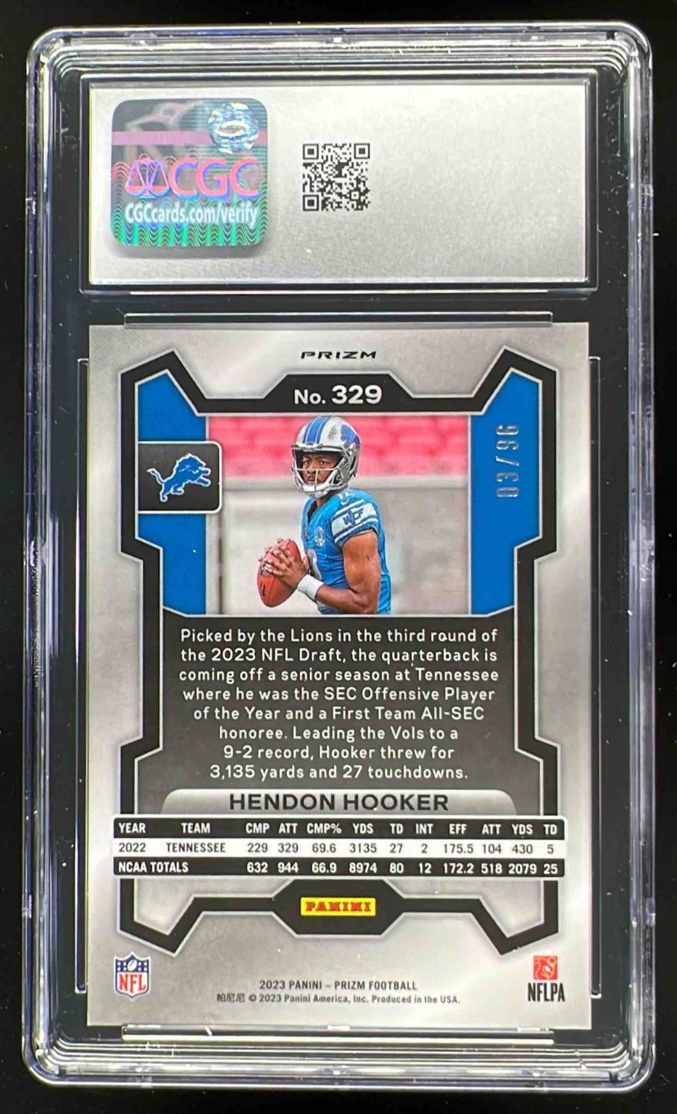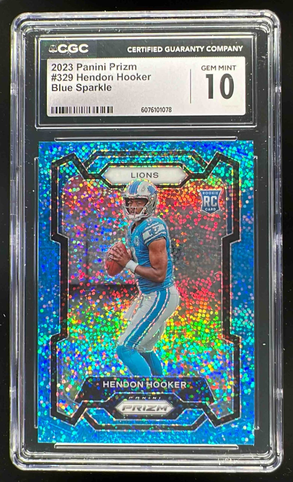 2023 Panini Prizm Blue Sparkle Prizm #329 Hendon Hooker RC /96 CGC 10