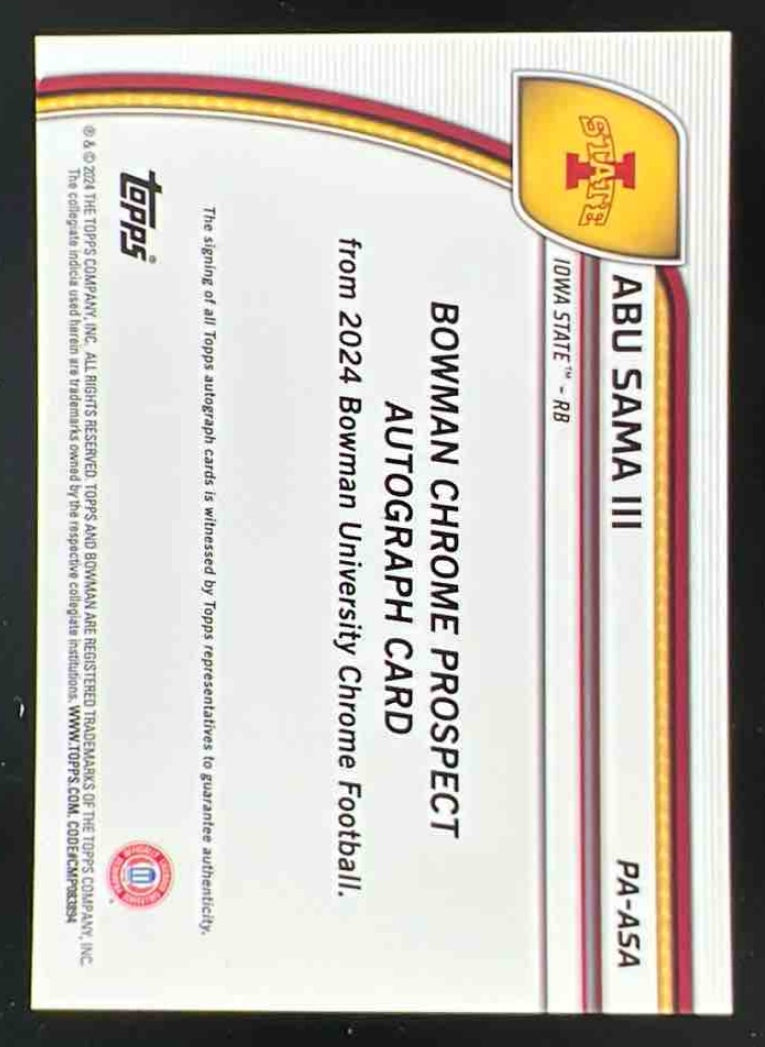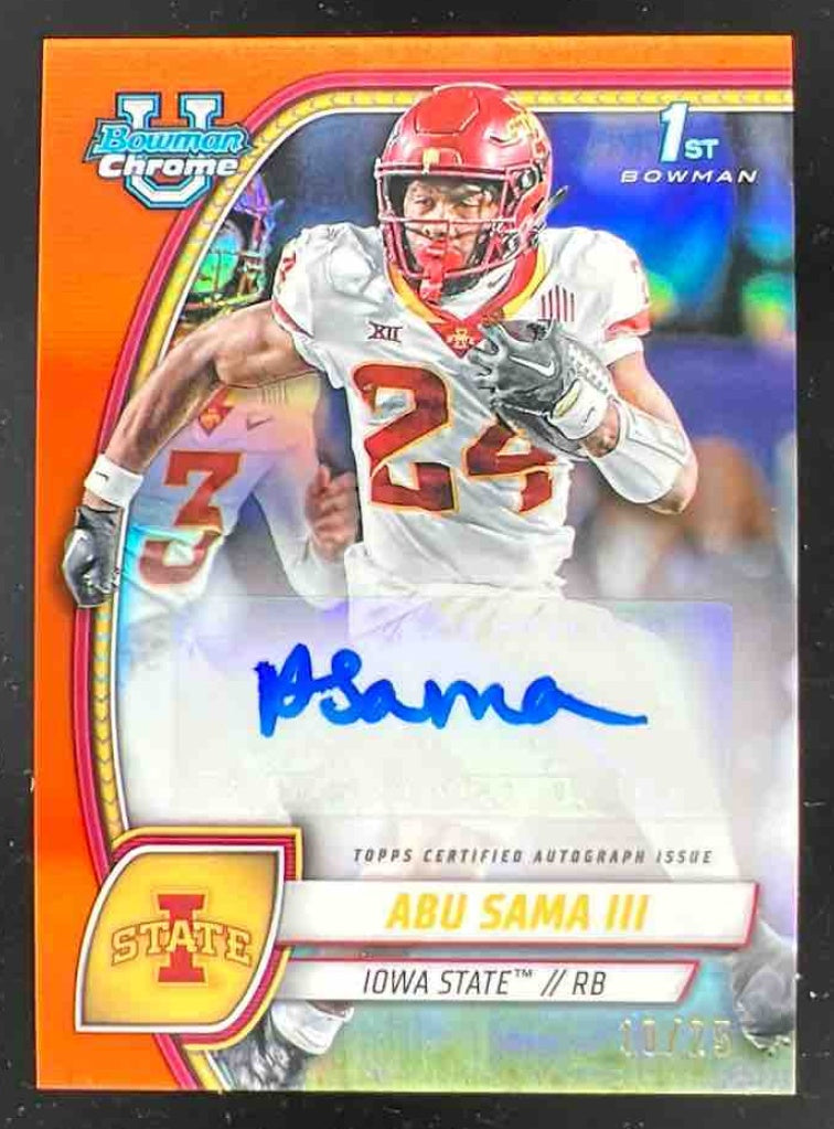 2024 Bowman Chrome University Orange Refractor #PA-ASA Abu Sama III Auto /25