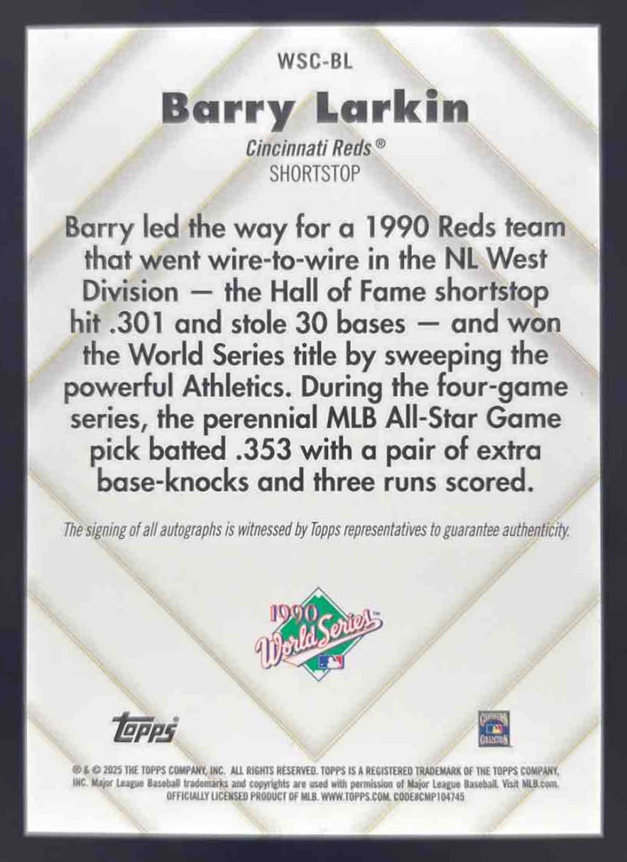 2025 Topps Chrome World Series Champion Autograph #WSC-BL Barry Larkin Auto /100