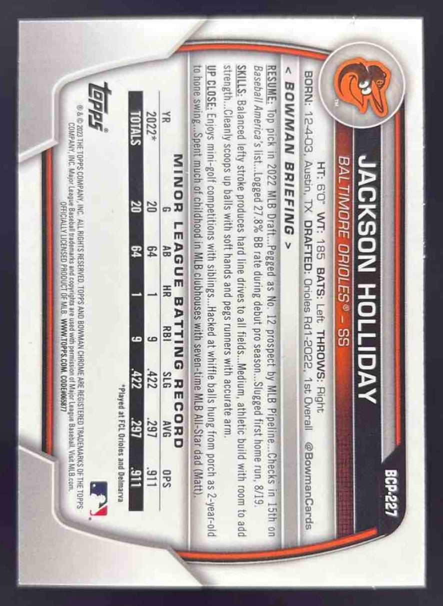 2023 Bowman Chrome Chrome Prospects Pearl Refractor #BCP-227 Jackson Holliday