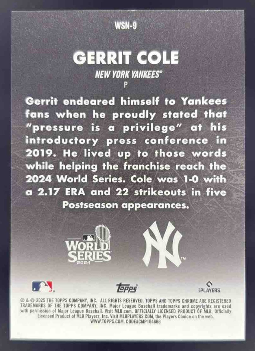2025 Topps Chrome World Series at Night #WSN-9 Gerrit Cole