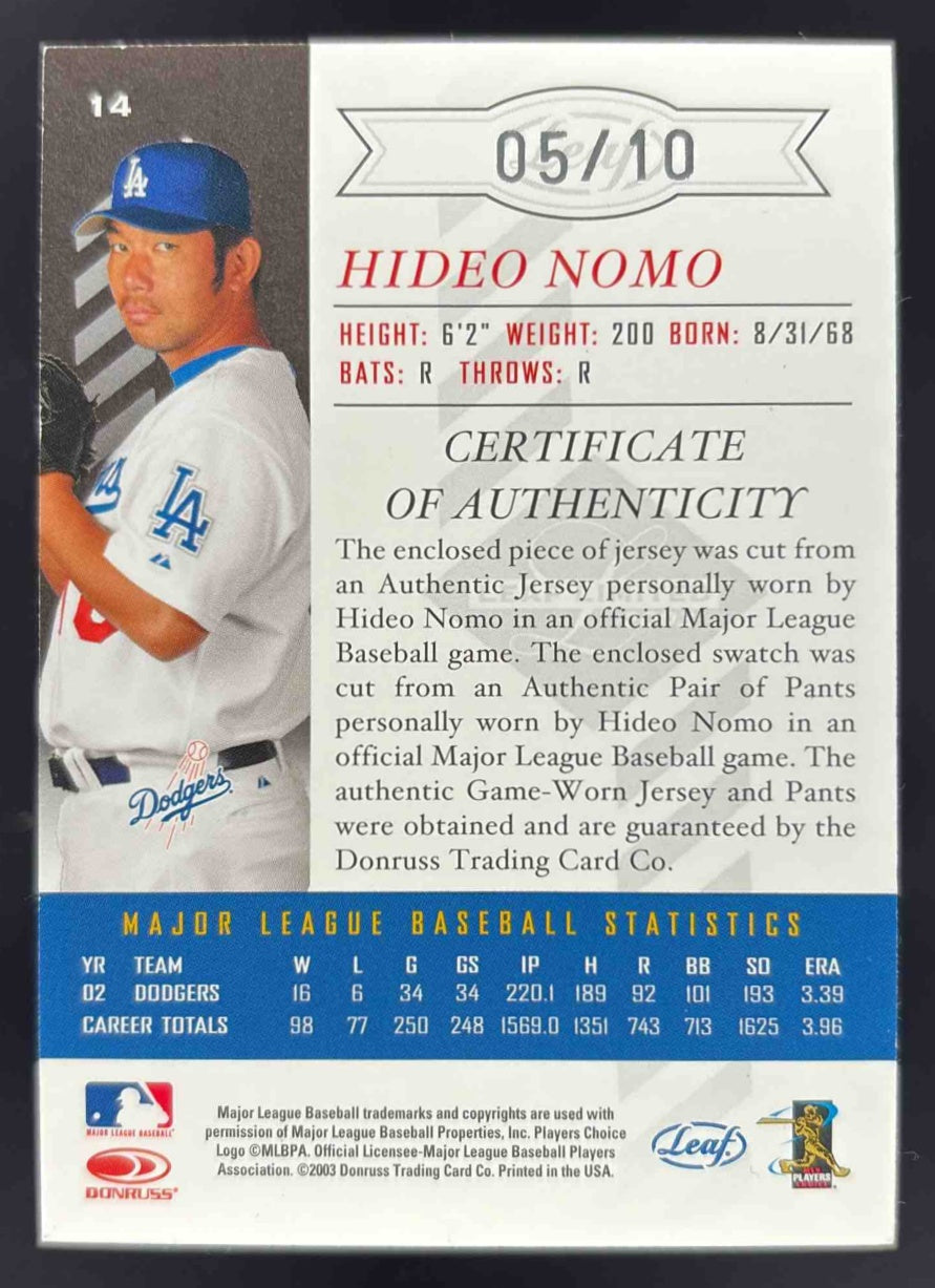 2003 Leaf Limited Threads Double Prime #14 Hideo Nomo /10