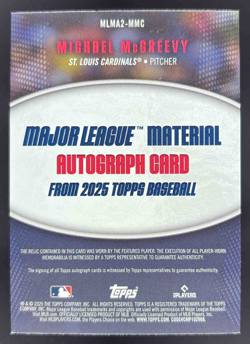 2025 Topps Major League Material #MLMA2-MMC Michael McGreevy RC Auto /50