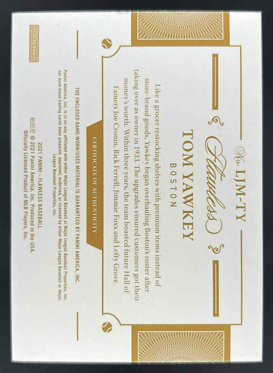 2021 Panini Flawless Legends Jumbo Materials Sapphire #LJM-TY Tom Yawkey /15