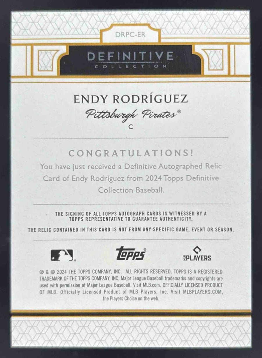 2024 Definitive Collection Rookie Patch Green #DRPC-ER Endy Rodriguez Auto /25