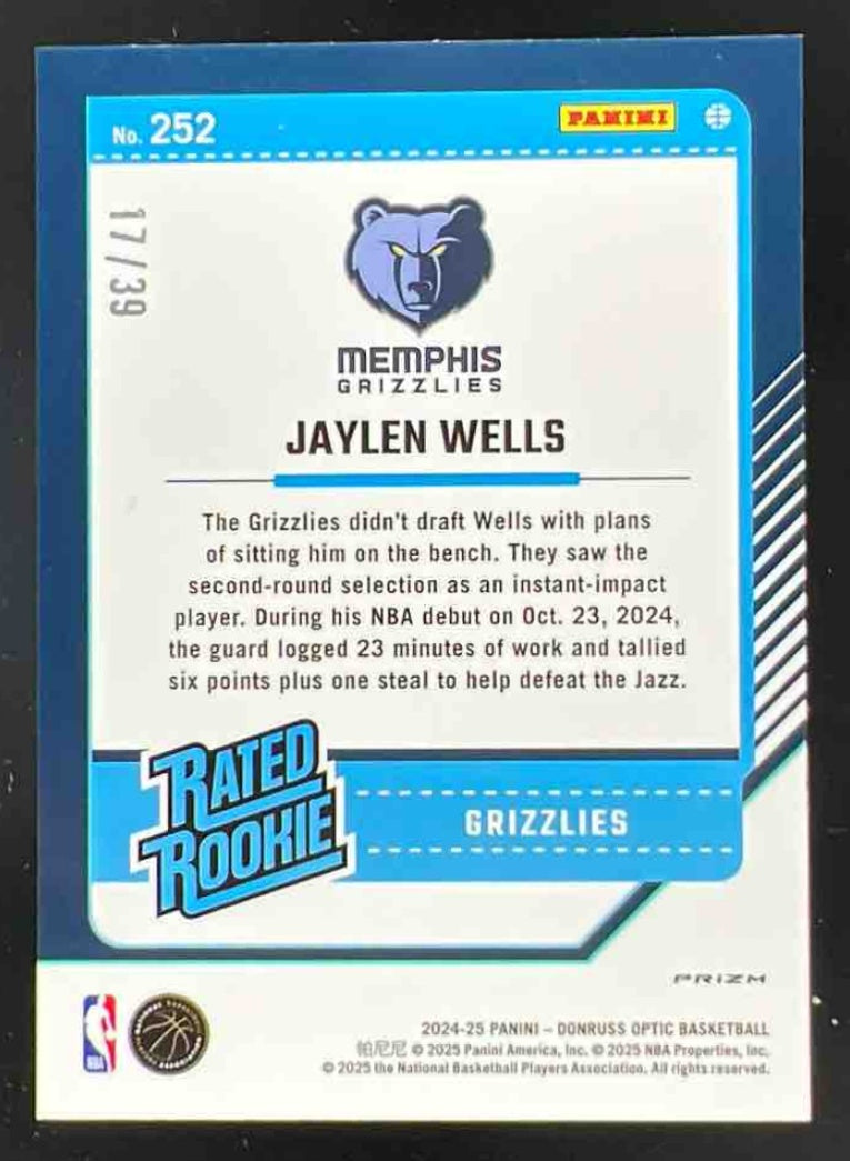 2024 Panini Donruss Optic Rated Rookie Black Velocity #252 Jaylen Wells RC /39