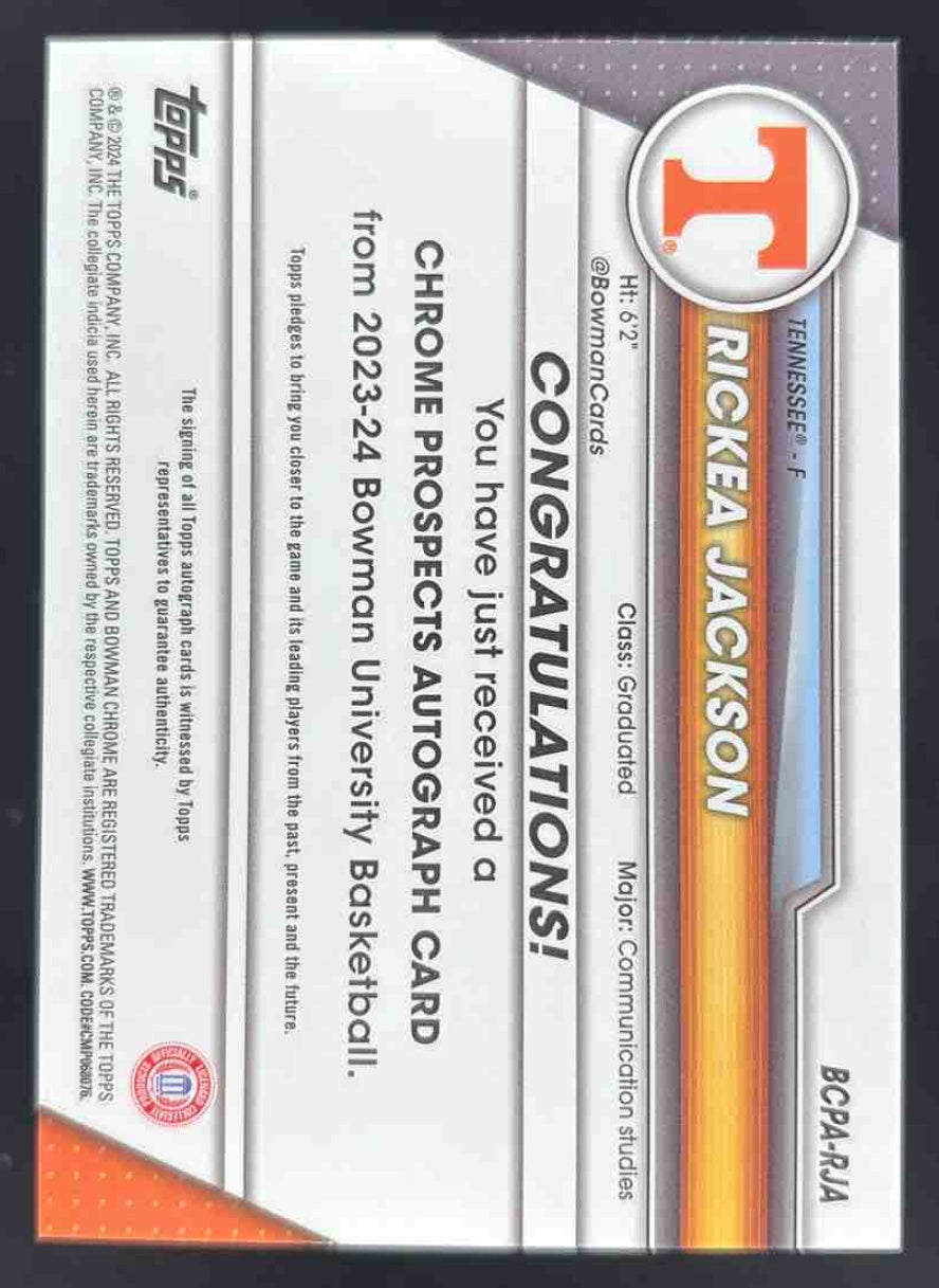 2023 Bowman University Chrome Prospects Autographs #BCPA-RJA Rickea Jackson Auto