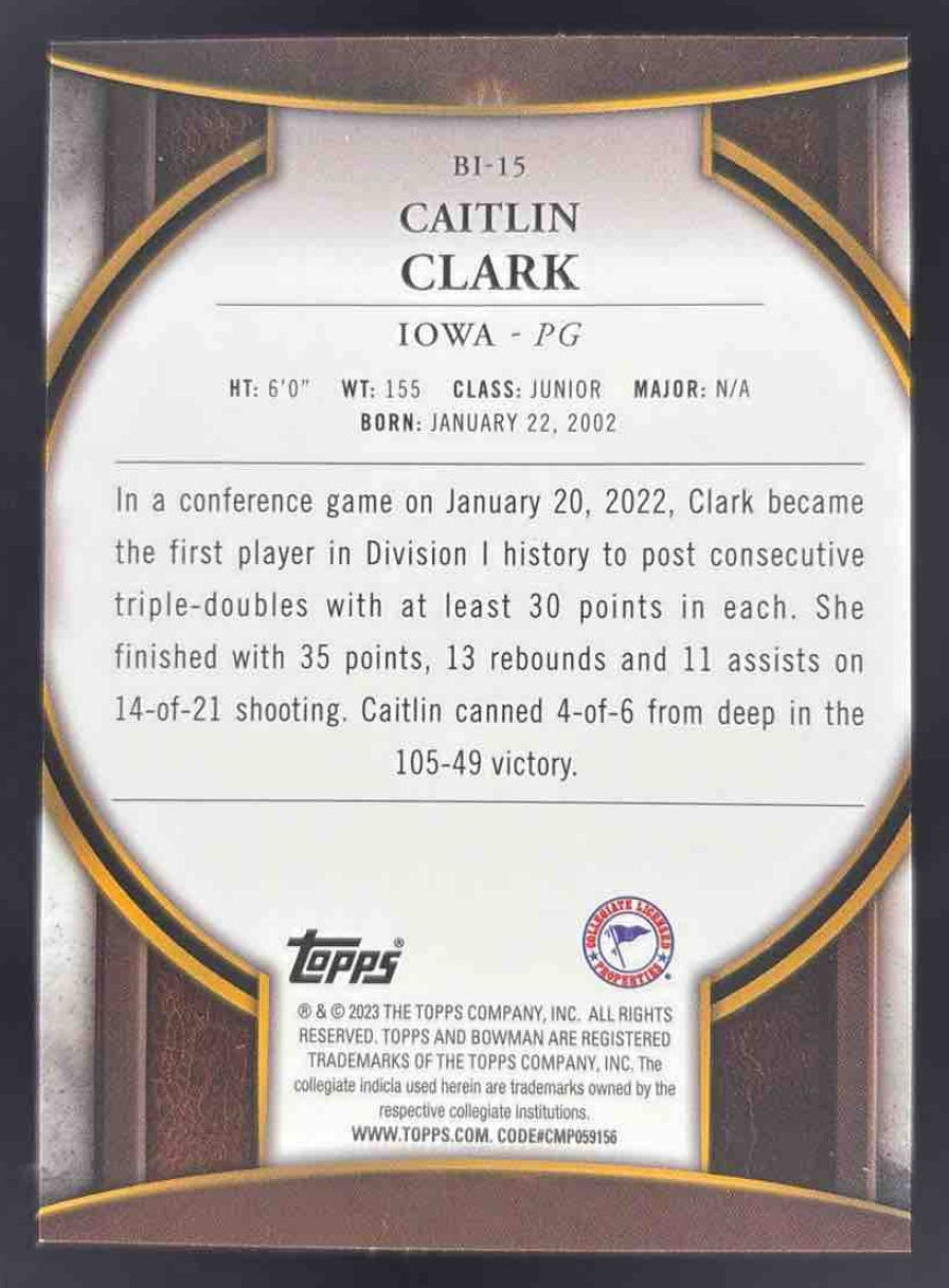 2022-23 Bowman Chrome University Bowman Invicta #BI-15 Caitlin Clark