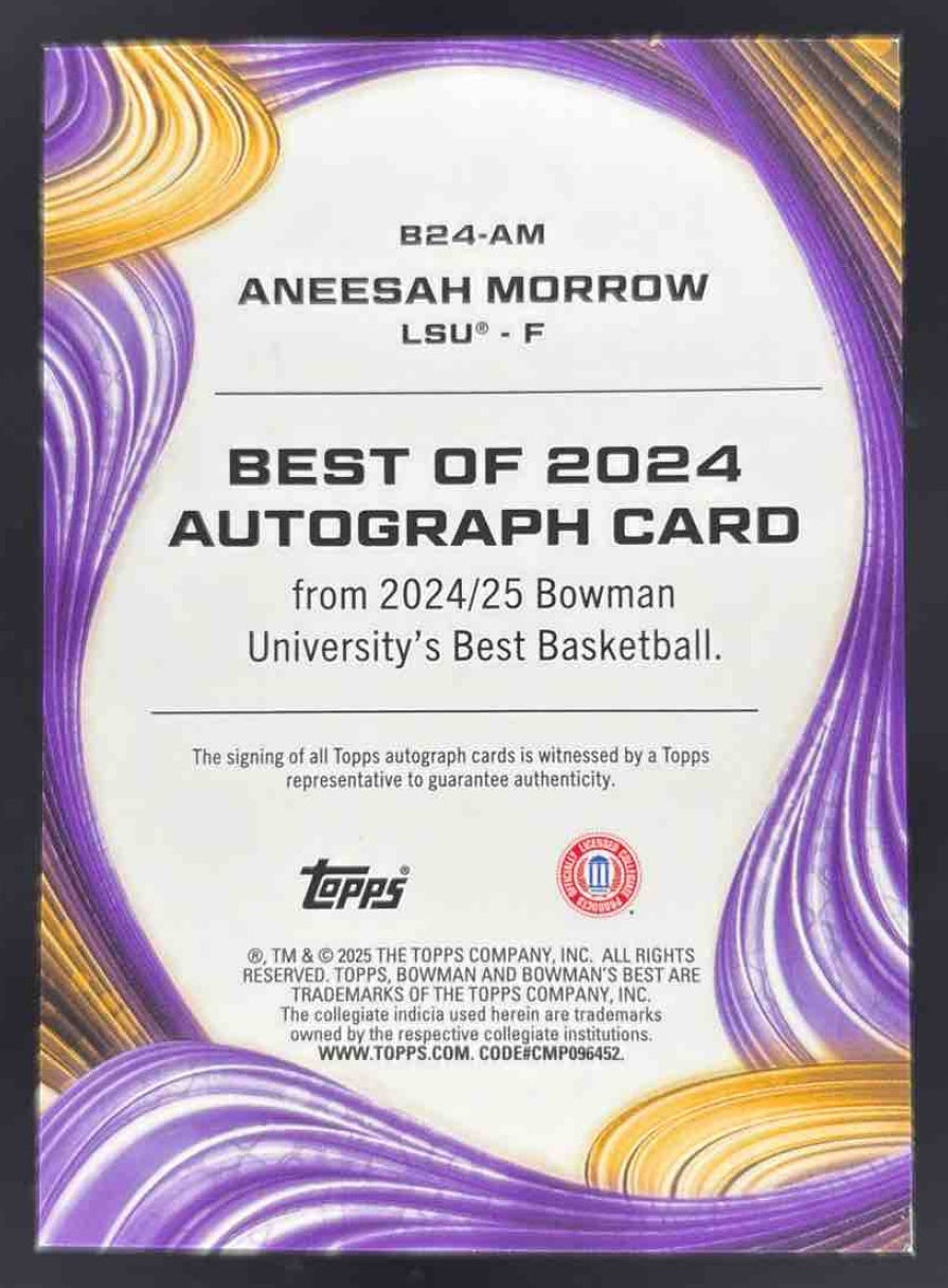 2024-25 Bowman's Best University Black Refractor #B24-AM Aneesah Morrow Auto /10